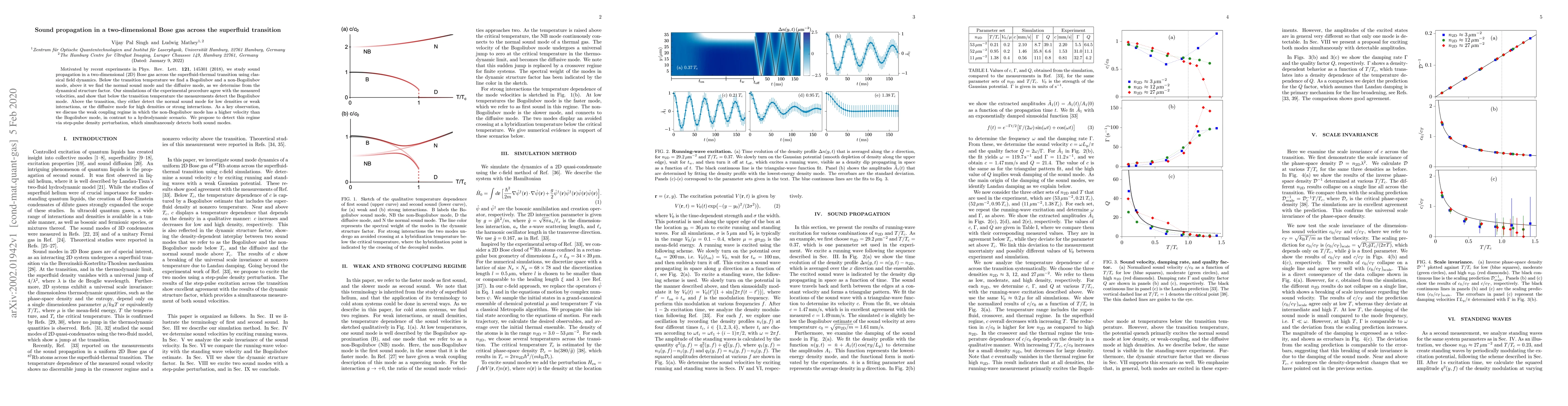 This paper investigates sound propagation in a 2D Bose gas across the superfluid transition, identifying distinct modes below and above the transition temperature. It proposes a method to detect the unique non-Bogoliubov mode in the weak coupling regime via step-pulse density perturbation.
