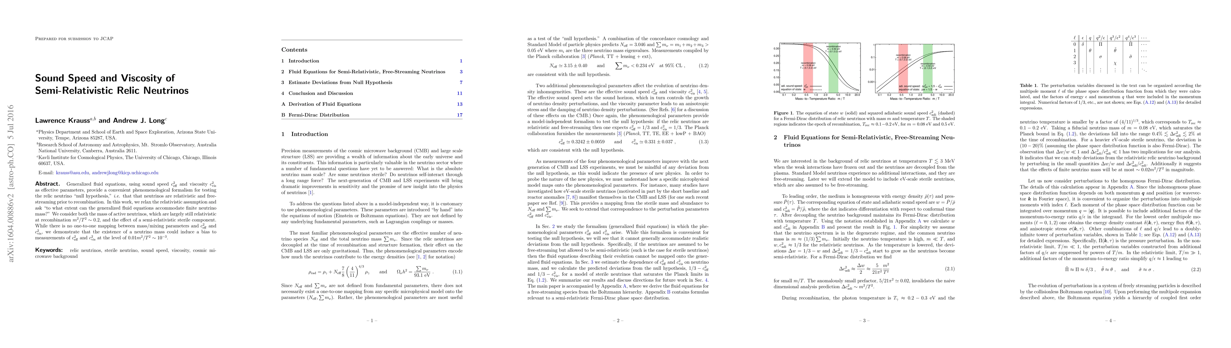 Generalized fluid equations, using sound speed $c_{\rm eff}^2$ and viscosity $c_{\rm vis}^2$ as effective parameters, provide a convenient phenomenological formalism for testing the relic neutrino "null hypothesis," i.e. that that neutrinos are relativistic and free-streaming prior to recombination. In this work, we relax the relativistic assumption and ask "to what extent can the generalized fluid equations accommodate finite neutrino mass?" We consider both the mass of active neutrinos, which are largely still relativistic at recombination $m^2 / T^2 \sim 0.2$, and the effect of a semi-relativistic sterile component. While there is no one-to-one mapping between mass/mixing parameters and $c_{\rm eff}^2$ and $c_{\rm vis}^2$, we demonstrate that the existence of a neutrino mass could induce a bias to measurements of $c_{\rm eff}^2$ and $c_{\rm vis}^2$ at the level of $0.01 m^2 / T^2 \sim 10^{-3}$.