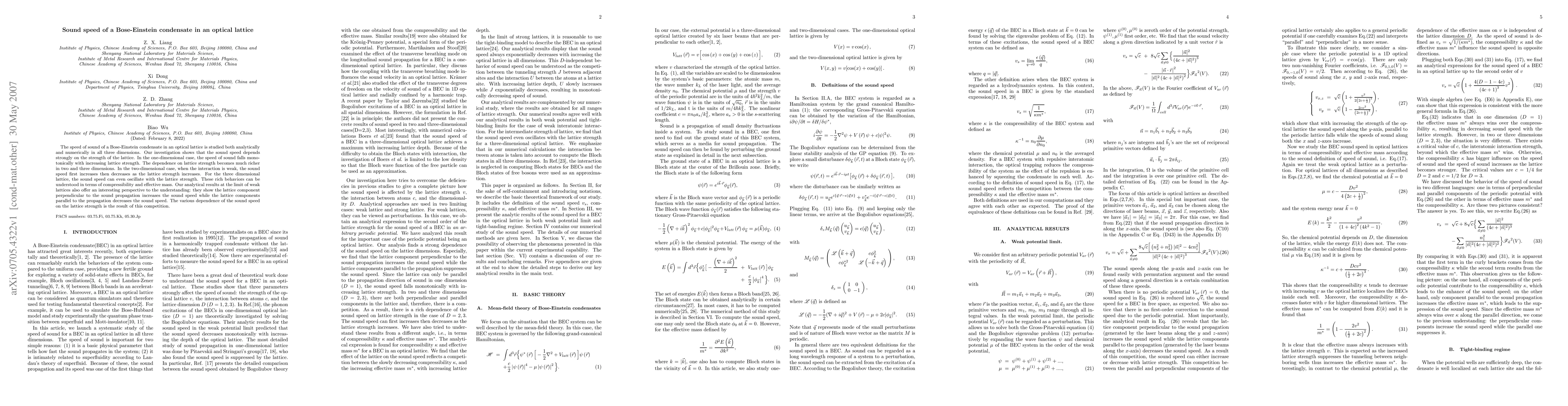 This research investigates the speed of sound in a Bose-Einstein condensate within an optical lattice, revealing complex dependencies on lattice strength across dimensions. Analytical and numerical results show that the sound speed varies significantly with lattice strength, oscillating in three dimensions and exhibiting a rich interplay between compressibility and effective mass.