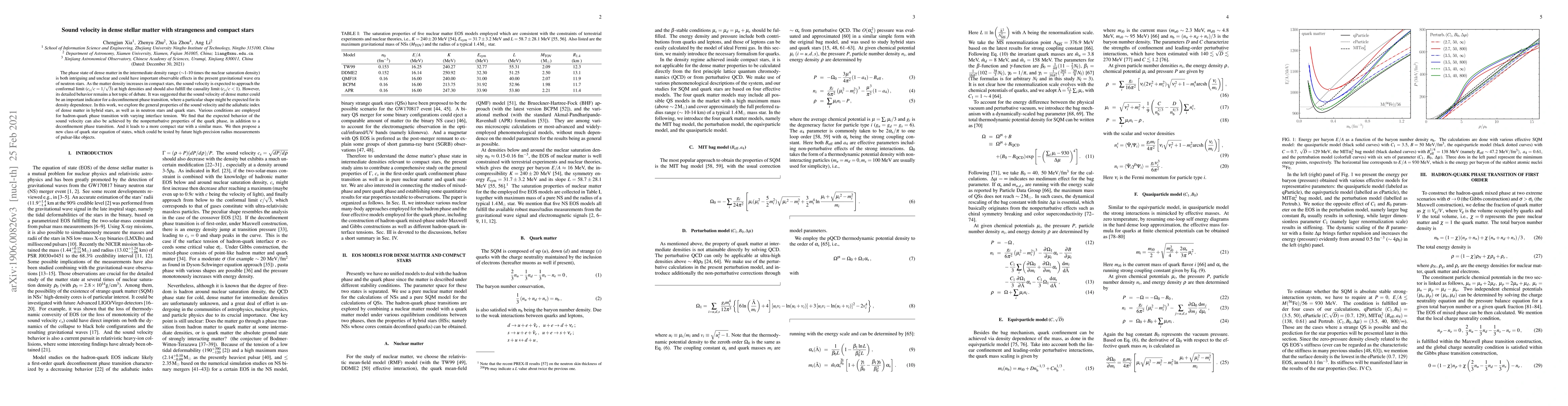 This paper investigates the sound velocity in dense stellar matter, including the possibility of a deconfinement phase transition in neutron and quark stars. It finds that the sound velocity's behavior can be influenced by nonperturbative quark phase properties, leading to more compact stars, and proposes new quark star equations of state for future observational tests.