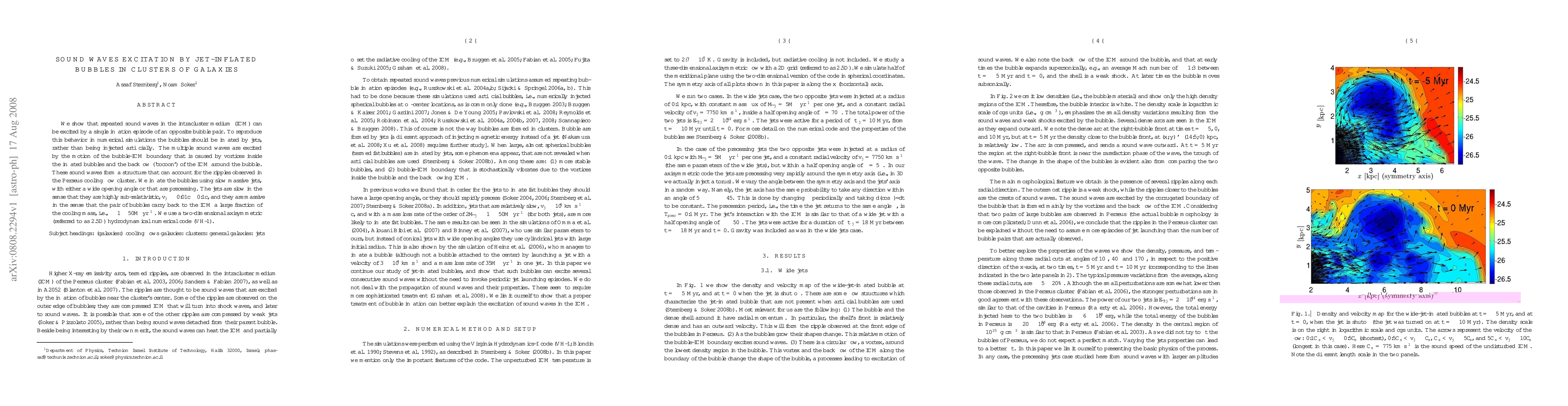 This paper demonstrates that repeated sound waves in the intracluster medium can be excited by jet-inflated bubbles in galaxy clusters, explaining the ripples seen in the Perseus cluster. The study uses a 2.5D hydrodynamical code to simulate slow, massive jets inflating bubbles, which generate sound waves through bubble-ICM boundary motion and backflow.