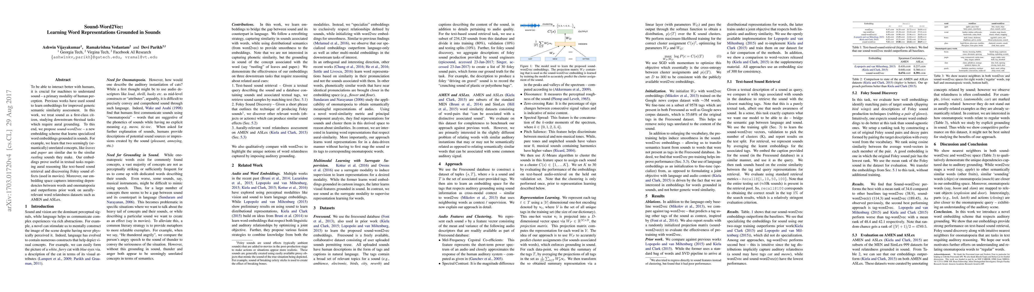 This paper introduces sound-word2vec, a novel embedding scheme that learns word representations grounded in sound, enabling machines to better understand aurally-relevant textual tasks. The embeddings reveal interesting dependencies between words, particularly for onomatopoeia, and outperform previous methods on datasets assessing aurally-relevant word relatedness.