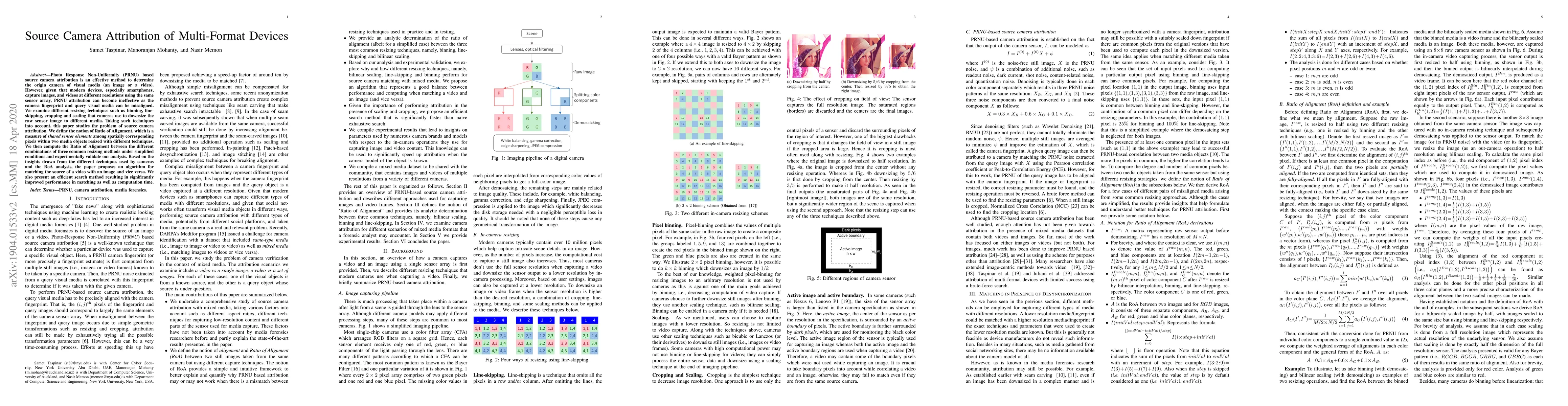 A new method for source camera attribution in multi-format devices is proposed, addressing alignment issues with resizing techniques used by cameras to capture images and videos.