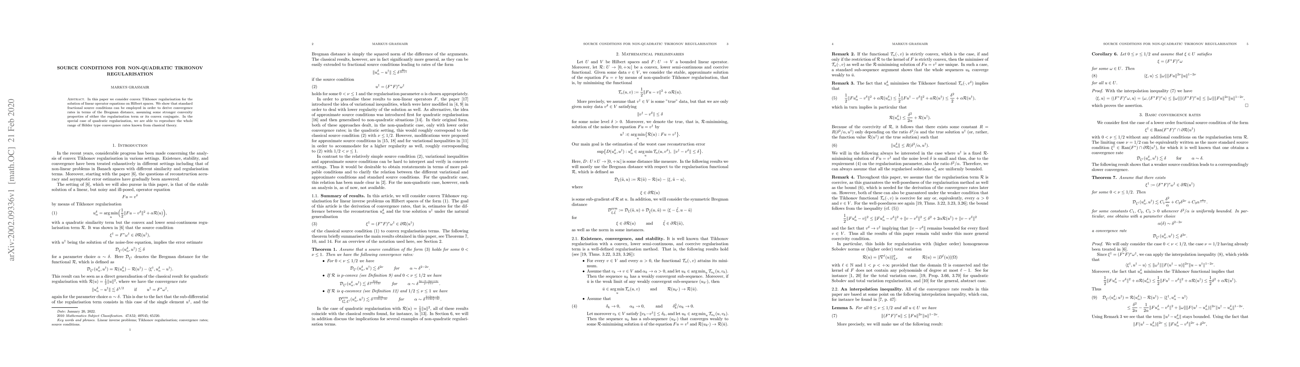 Researchers explore how fractional source conditions can improve convergence rates for solving linear operator equations using convex Tikhonov regularization. They successfully reproduced H"older type convergence rates for quadratic regularization.