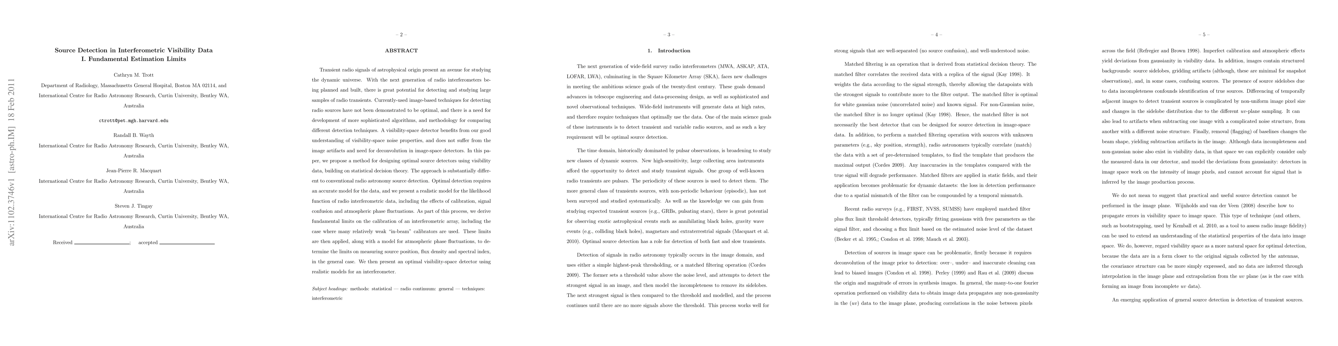Researchers propose a new method for detecting radio sources using visibility data in interferometric arrays, with optimized detection limits for position, flux density, and spectral index.