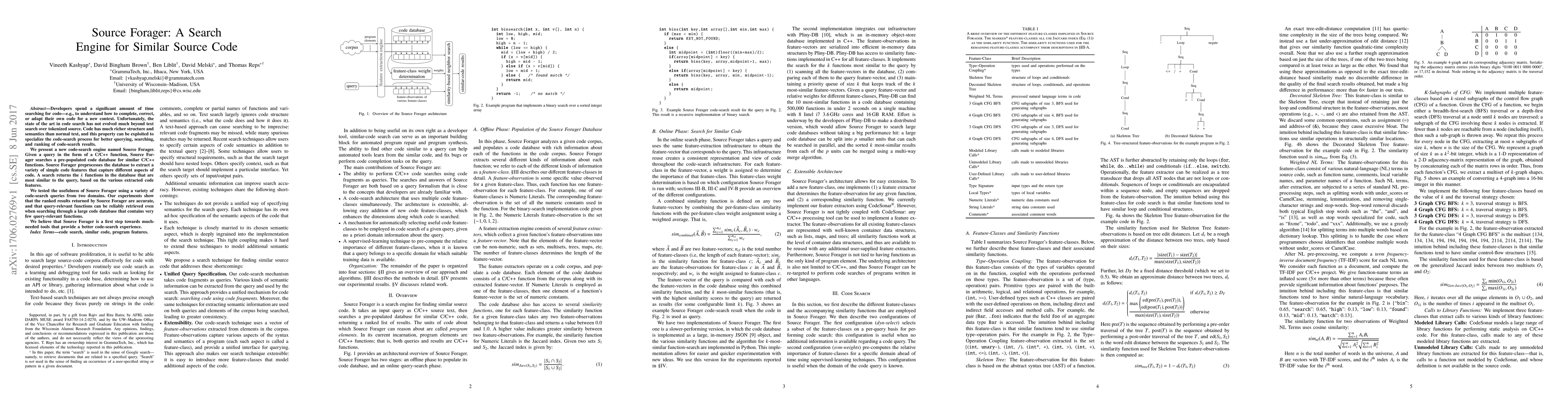 Unlike traditional text-based code search engines, Source Forager leverages the structural and semantic properties of code, providing a more accurate and efficient code-search experience.