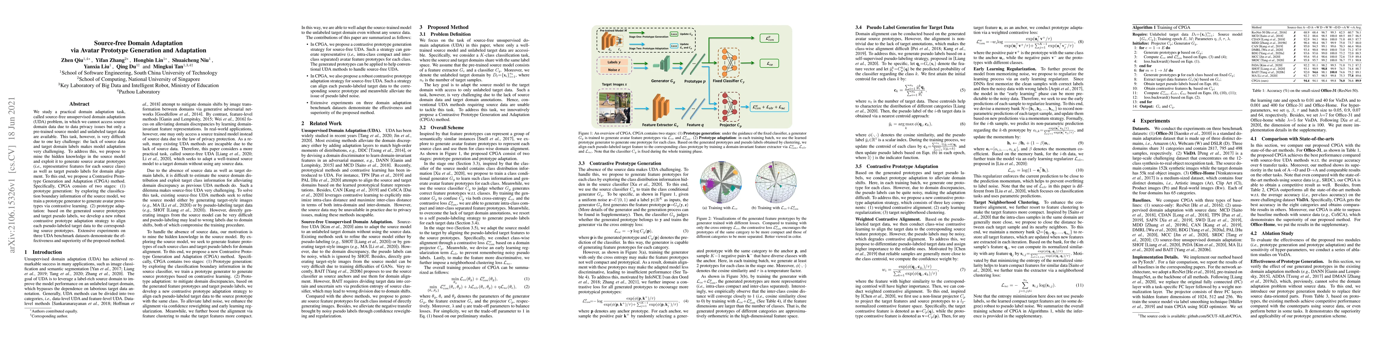 This paper proposes a method for source-free unsupervised domain adaptation by generating avatar prototypes from a pre-trained source model and using contrastive learning to adapt these prototypes to unlabeled target data, achieving effective domain alignment without access to source domain data. The proposed Contrastive Prototype Generation and Adaptation (CPGA) method demonstrates superior performance on benchmark datasets.