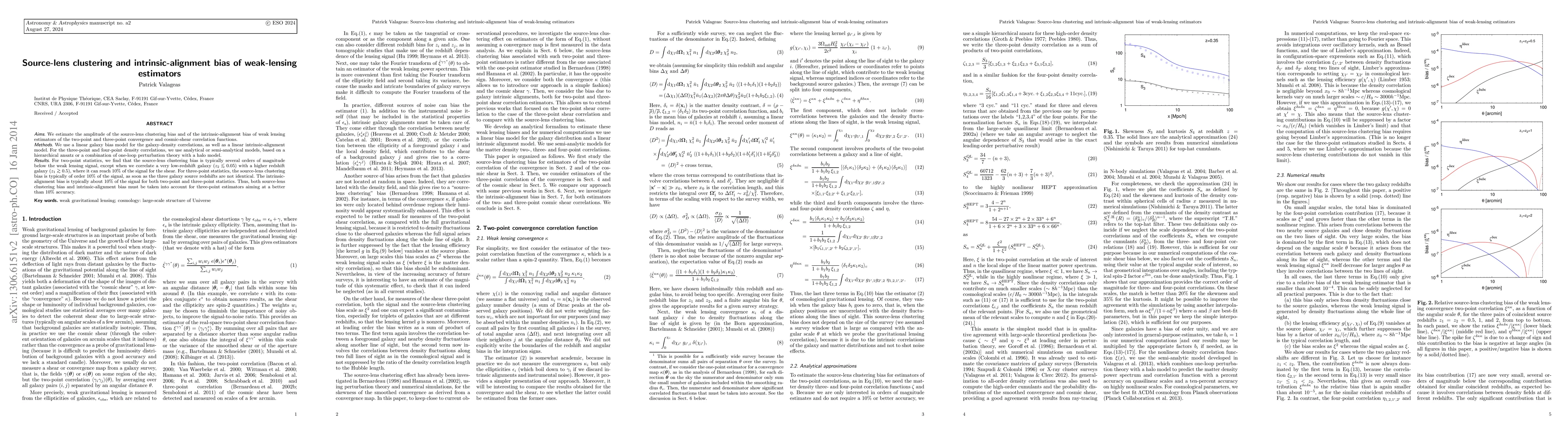 This paper estimates the source-lens clustering and intrinsic-alignment biases in weak lensing estimators, finding that while the former is usually negligible, it can reach 10% of the signal under specific conditions. The intrinsic-alignment bias is consistently around 10% for both two-point and three-point statistics, emphasizing the need to account for these biases for accurate three-point estimators.