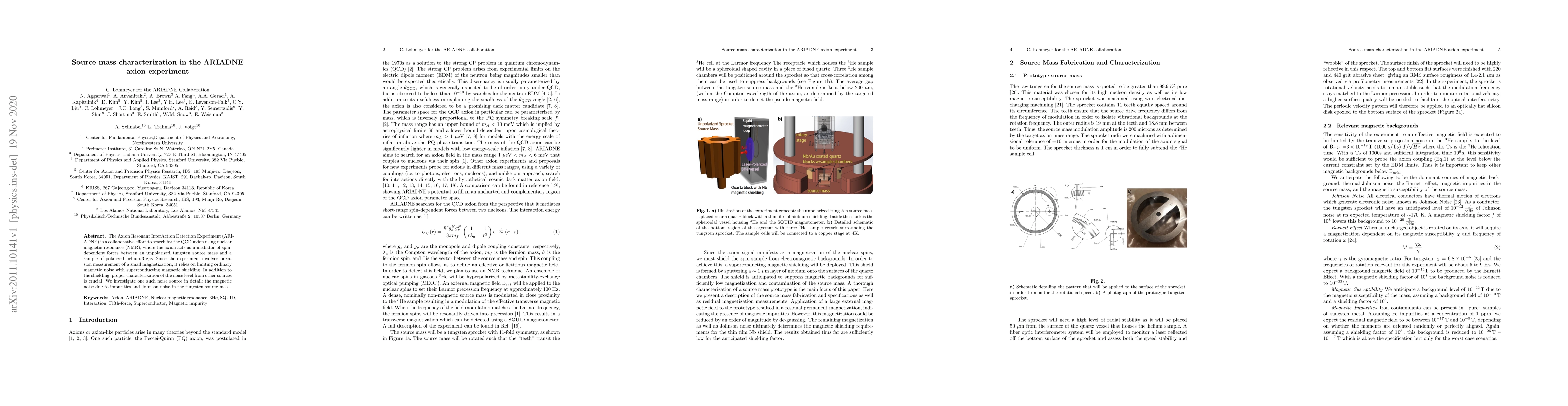 The Axion Resonant InterAction Detection Experiment (ARIADNE) is a collaborative effort to search for the QCD axion using nuclear magnetic resonance (NMR), where the axion acts as a mediator of spin-dependent forces between an unpolarized tungsten source mass and a sample of polarized helium-3 gas. Since the experiment involves precision measurement of a small magnetization, it relies on limiting ordinary magnetic noise with superconducting magnetic shielding. In addition to the shielding, proper characterization of the noise level from other sources is crucial. We investigate one such noise source in detail: the magnetic noise due to impurities and Johnson noise in the tungsten source mass.