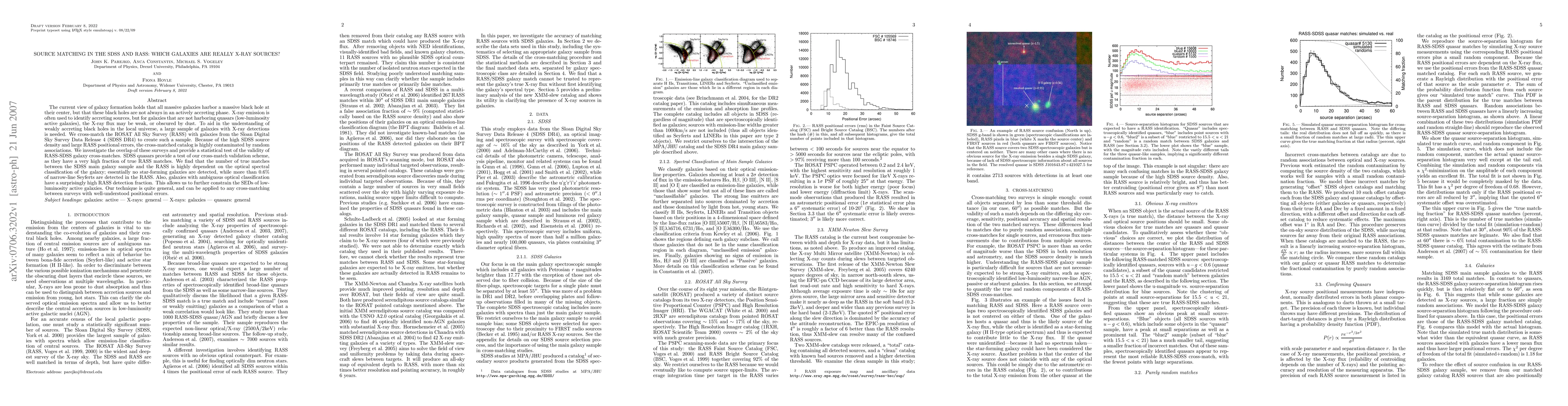 The current view of galaxy formation holds that all massive galaxies harbor a massive black hole at their center, but that these black holes are not always in an actively accreting phase. X-ray emission is often used to identify accreting sources, but for galaxies that are not harboring quasars (low-luminosity active galaxies), the X-ray flux may be weak, or obscured by dust. To aid in the understanding of weakly accreting black holes in the local universe, a large sample of galaxies with X-ray detections is needed. We cross-match the ROSAT All Sky Survey (RASS) with galaxies from the Sloan Digital Sky Survey Data Release 4 (SDSS DR4) to create such a sample. Because of the high SDSS source density and large RASS positional errors, the cross-matched catalog is highly contaminated by random associations. We investigate the overlap of these surveys and provide a statistical test of the validity of RASS-SDSS galaxy cross-matches. SDSS quasars provide a test of our cross-match validation scheme, as they have a very high fraction of true RASS matches. We find that the number of true matches between the SDSS main galaxy sample and the RASS is highly dependent on the optical spectral classification of the galaxy; essentially no star-forming galaxies are detected, while more than 0.6% of narrow-line Seyferts are detected in the RASS. Also, galaxies with ambiguous optical classification have a surprisingly high RASS detection fraction. This allows us to further constrain the SEDs of low-luminosity active galaxies. Our technique is quite general, and can be applied to any cross-matching between surveys with well-understood positional errors.