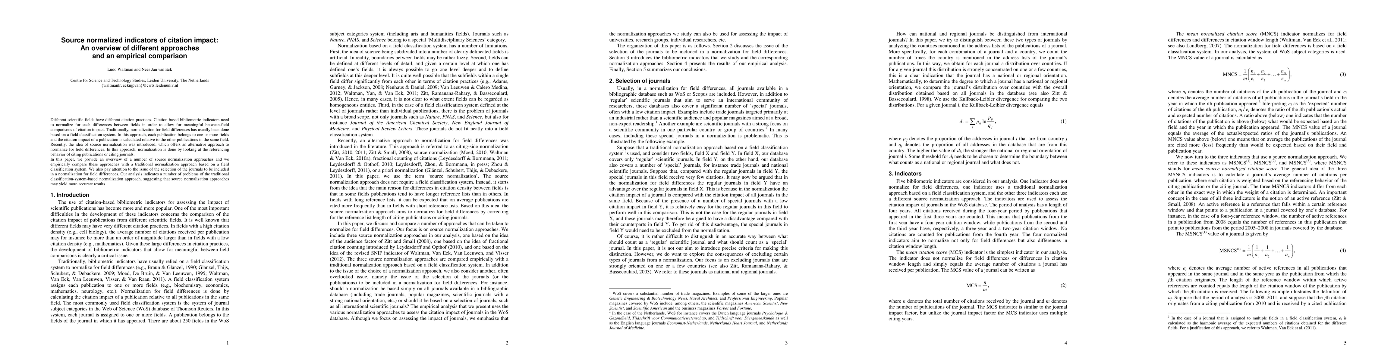 This paper reviews various source normalization methods for citation impact and compares them empirically against traditional field classification-based normalization. It highlights issues with the traditional approach, suggesting that source normalization may provide more accurate comparisons across scientific fields.