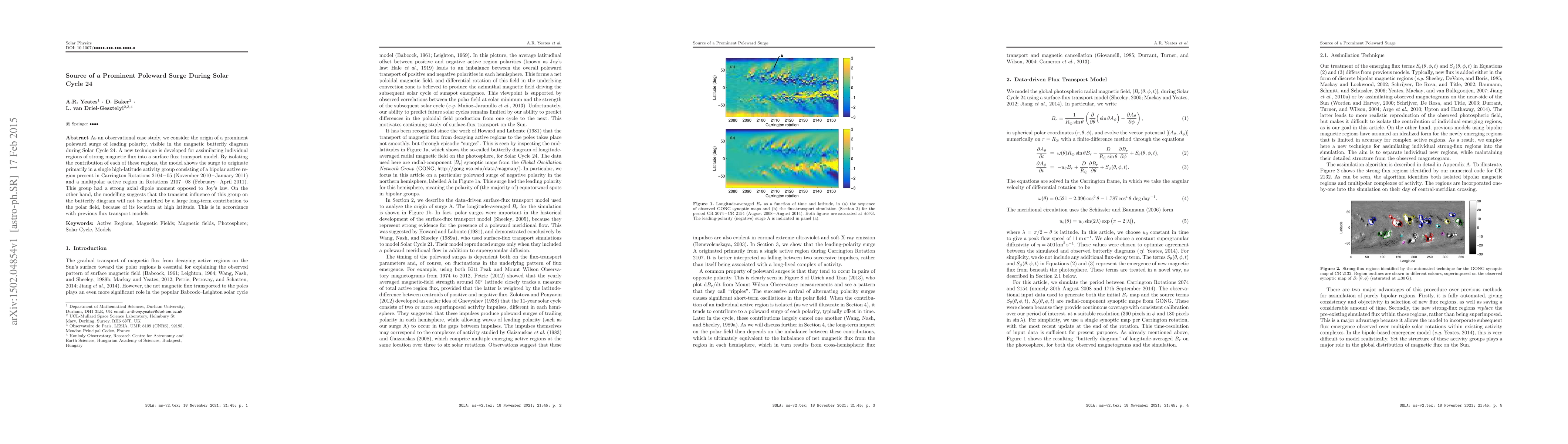 This study identifies the origin of a significant poleward surge in Solar Cycle 24, attributing it primarily to a high-latitude activity group with a strong axial dipole moment. Despite its transient influence, the model predicts minimal long-term contribution to the polar field due to its high-latitude location.