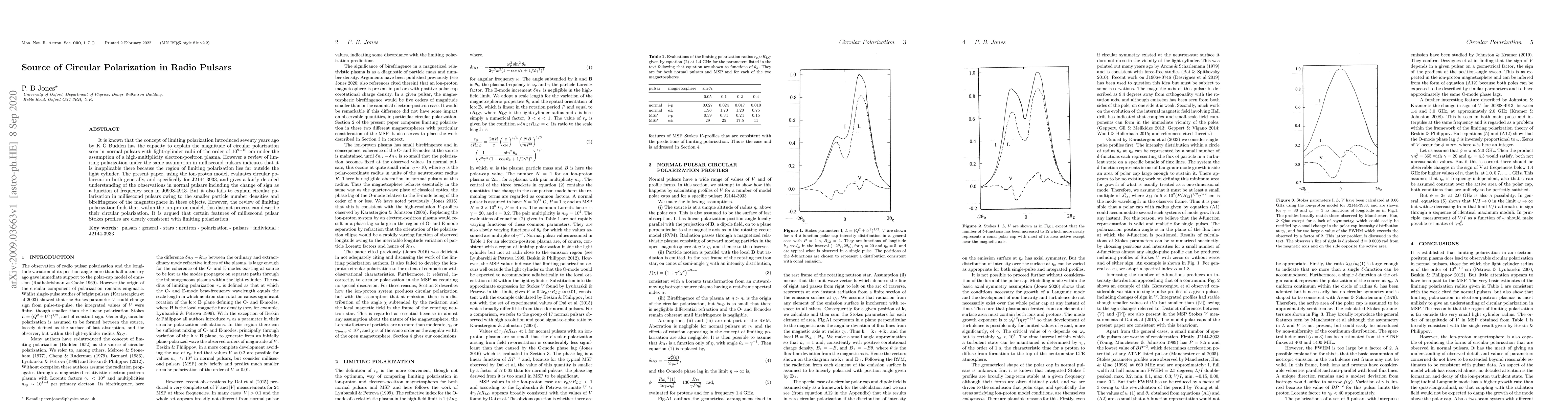 It is known that the concept of limiting polarization introduced seventy years ago by K G Budden has the capacity to explain the magnitude of circular polarization seen in normal pulsars with rotation periods of the order of one second under the assumption of a high-multiplicity electron-positron plasma. However, a review of limiting polarization under the same assumption in millisecond pulsars indicates that it is inapplicable there because the region of limiting polarization lies far outside the light cylinder. The present paper, using the ion-proton model, evaluates circular polarization both generally and specifically for J2144-3933, and gives a fairly detailed understanding of the observations in normal pulsars including the change of sign as a function of frequency seen in J0908-4913. But it also fails to explain circular polarization in millisecond pulsars owing to the smaller particle number densities and birefringence of the magnetosphere in these objects. However, the review of limiting polarization finds that, within the ion-proton model, this distinct process can describe their circular polarization. It is argued that certain features of millisecond pulsar Stokes profiles are clearly consistent with limiting polarization.