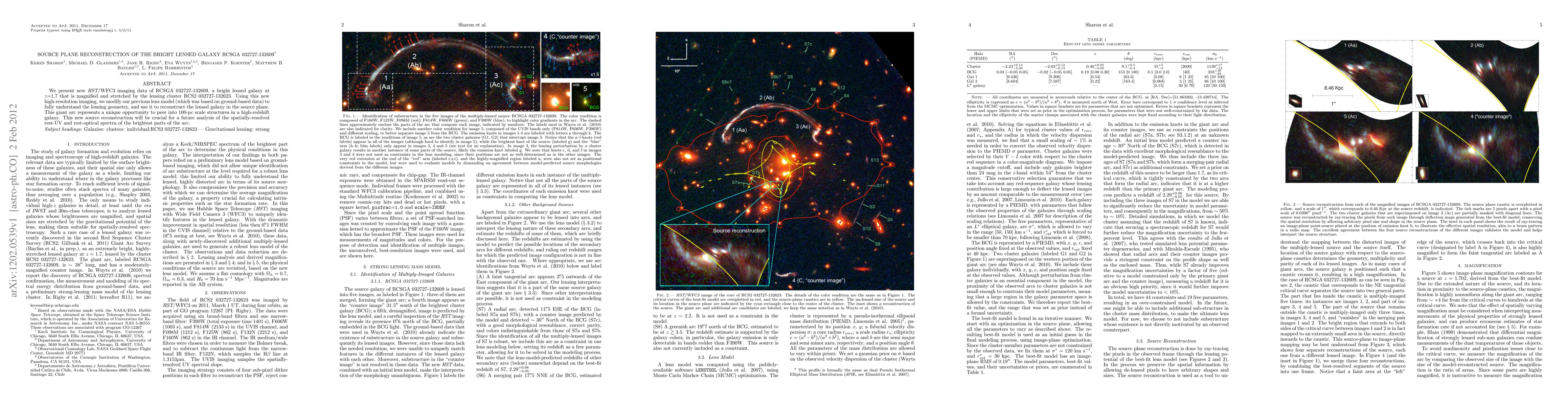We present new HST/WFC3 imaging data of RCSGA 032727-132609, a bright lensed galaxy at z=1.7 that is magnified and stretched by the lensing cluster RCS2 032727-132623. Using this new high-resolution imaging, we modify our previous lens model (which was based on ground-based data) to fully understand the lensing geometry, and use it to reconstruct the lensed galaxy in the source plane. This giant arc represents a unique opportunity to peer into 100-pc scale structures in a high-redshift galaxy. This new source reconstruction will be crucial for a future analysis of the spatially-resolved rest-UV and rest-optical spectra of the brightest parts of the arc.