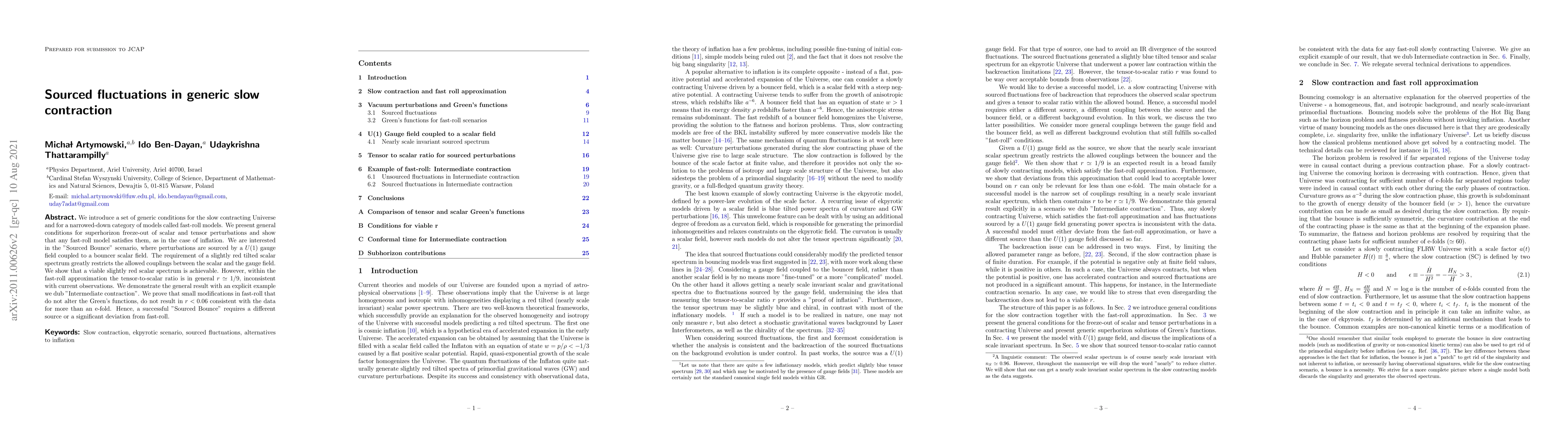 This paper explores conditions for a slow contracting Universe and fast-roll models, focusing on a "Sourced Bounce" scenario where scalar perturbations are sourced by a $U(1)$ gauge field. It finds that while a slightly red-tilted scalar spectrum is achievable, the tensor-to-scalar ratio remains inconsistent with observations unless significant deviations from fast-roll occur.