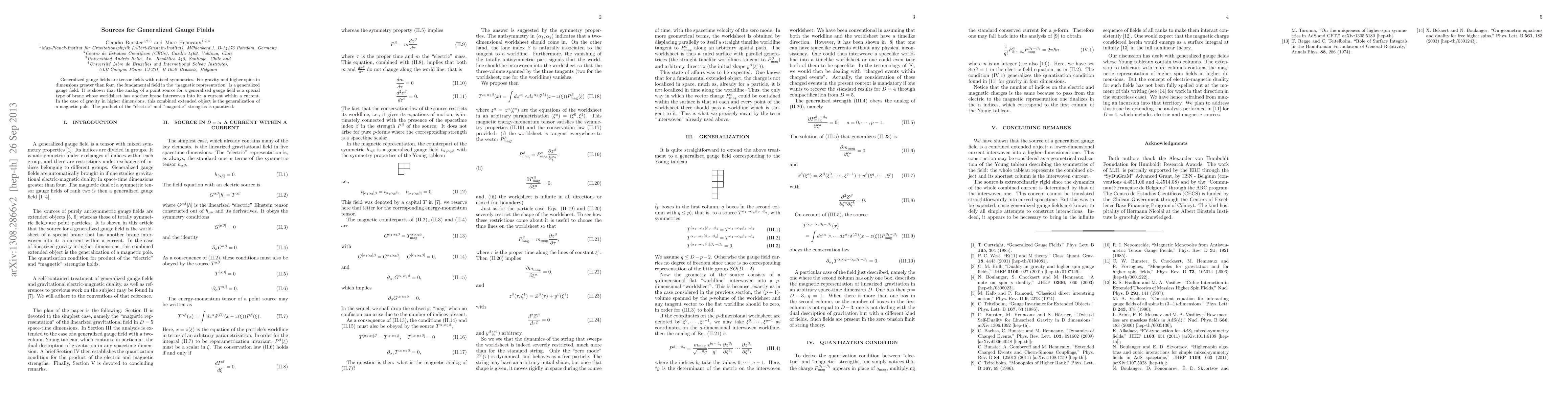 Generalized gauge fields are tensor fields with mixed symmetries. For gravity and higher spins in dimensions greater than four, the fundamental field in the "magnetic representation" is a generalized gauge field. It is shown that the analog of a point source for a generalized gauge field is a special type of brane whose worldsheet has another brane interwoven into it: a current within a current. In the case of gravity in higher dimensions, this combined extended object is the generalization of a magnetic pole. The Dirac quantization condition for the "electric" and "magnetic" strengths holds.