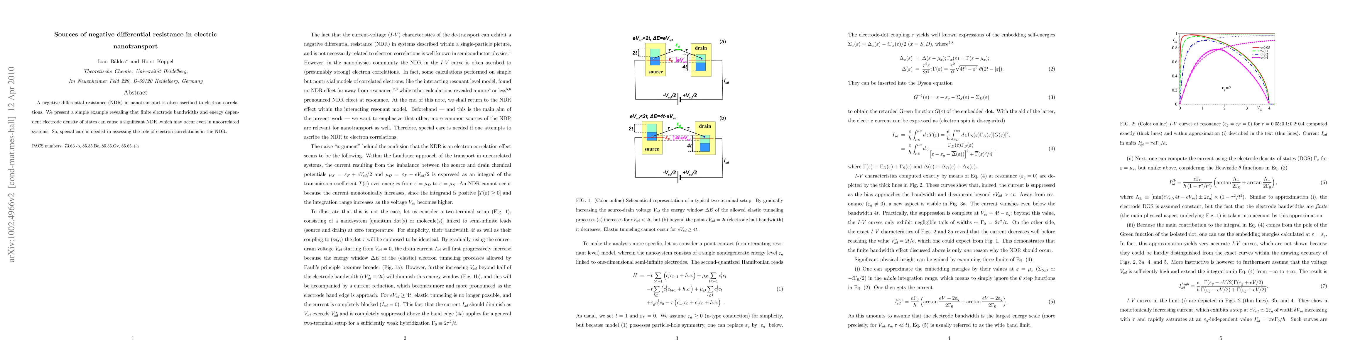 A negative differential resistance (NDR) in the nanotransport is often ascribed to electron correlations. We present a simple example which demonstrates that finite electrode bandwidths and energy dependent electrode density of states are responsible for significant NDR effects, which occur even in uncorrelated nanotransport. Therefore, special care is needed in assessing the contribution of electron correlations to the NDR.