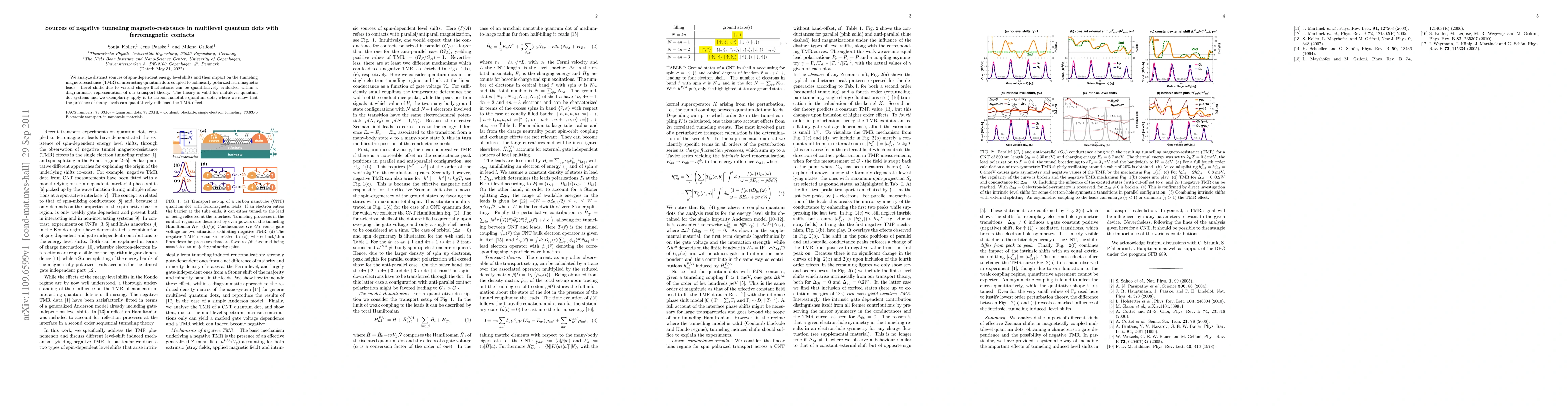 This paper investigates the spin-dependent energy level shifts in multilevel quantum dots connected to ferromagnetic contacts, identifying virtual charge fluctuations as a source of negative tunneling magnetoresistance (TMR). The authors apply their transport theory to carbon nanotube quantum dots, demonstrating that multiple levels can significantly influence the TMR effect.