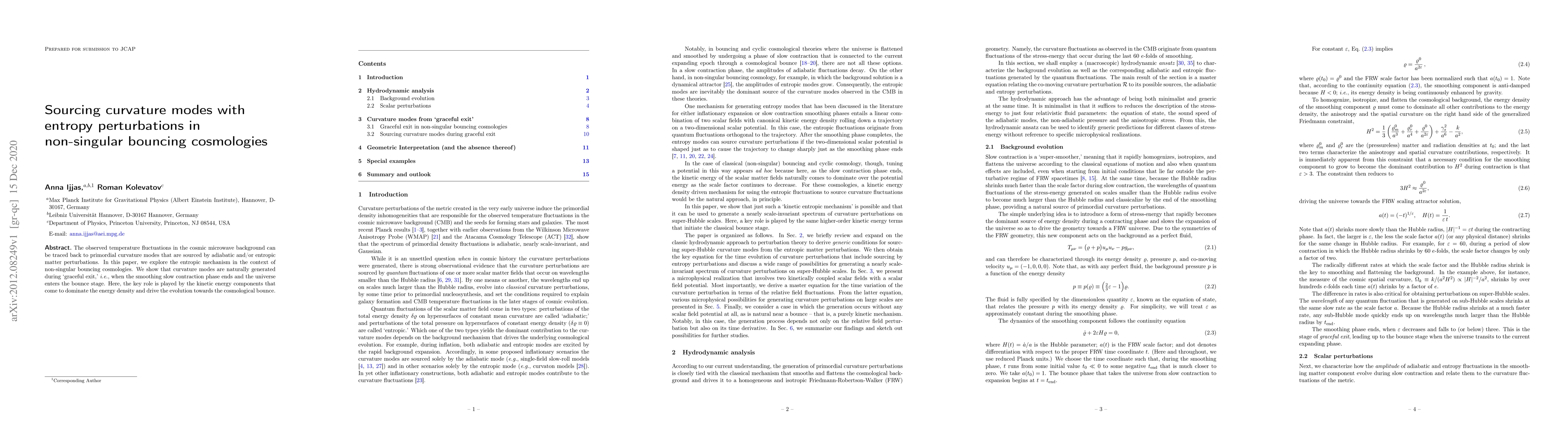 This paper investigates how entropic perturbations generate curvature modes in non-singular bouncing cosmologies, demonstrating that these modes naturally arise during the transition from the smoothing slow contraction phase to the bounce stage, driven by kinetic energy components.