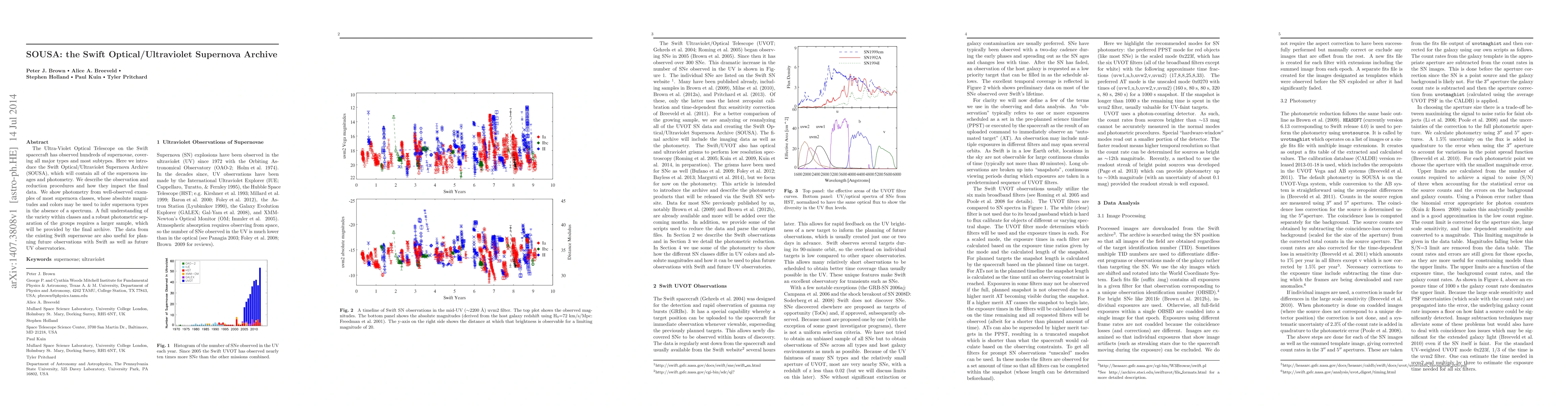 The Swift Optical/Ultraviolet Supernova Archive (SOUSA) compiles images and photometry from the Ultra-Violet Optical Telescope on the Swift spacecraft, facilitating the study of supernovae types through photometric data. The archive aims to enhance future observational planning and provide a comprehensive dataset for understanding supernova diversity.
