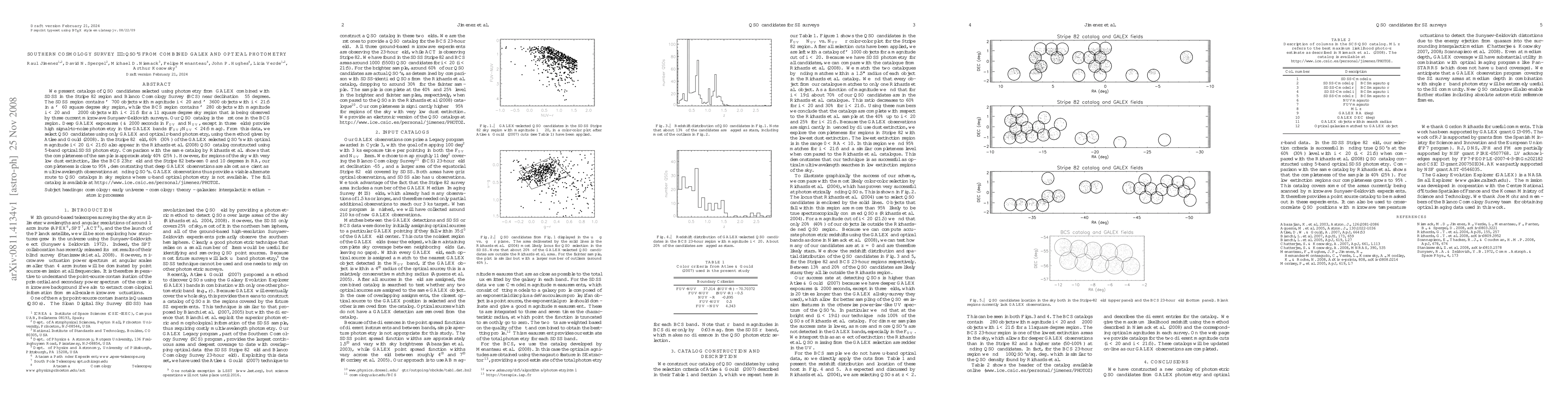 We present catalogs of QSO candidates selected using photometry from GALEX combined with SDSS in the Stripe 82 region and Blanco Cosmology Survey (BCS) near declination -55 degrees. The SDSS region contains ~700 objects with magnitude i < 20 and ~3600 objects with i < 21.5 in a ~60 square degree sky region, while the BCS region contains ~280 objects with magnitude i < 20 and ~2000 objects with i < 21.5 for a 11 square degree sky region that is being observed by three current microwave Sunyaev-Zeldovich surveys. Our QSO catalog is the first one in the BCS region. Deep GALEX exposures (~2000 seconds in FUV and NUV, except in three fields) provide high signal-to-noise photometry in the GALEX bands (FUV, NUV < 24.5 mag). From this data, we select QSO candidates using only GALEX and optical r-band photometry, using the method given by Atlee and Gould (2008). In the Stripe 82 field, 60% (30%) of the GALEX selected QSO's with optical magnitude i<20 (i<21.5) also appear in the Richards et al. (2008) QSO catalog constructed using 5-band optical SDSS photometry. Comparison with the same catalog by Richards et al. shows that the completeness of the sample is approximately 40%(25%). However, for regions of the sky with very low dust extinction, like the BCS 23hr field and the Stripe 82 between 0 and 10 degrees in RA, our completeness is close to 95%, demonstrating that deep GALEX observations are almost as efficient as multi-wavelength observations at finding QSO's. GALEX observations thus provide a viable alternate route to QSO catalogs in sky regions where u-band optical photometry is not available. The full catalog is available at http://www.ice.csic.es/personal/jimenez/PHOTOZ