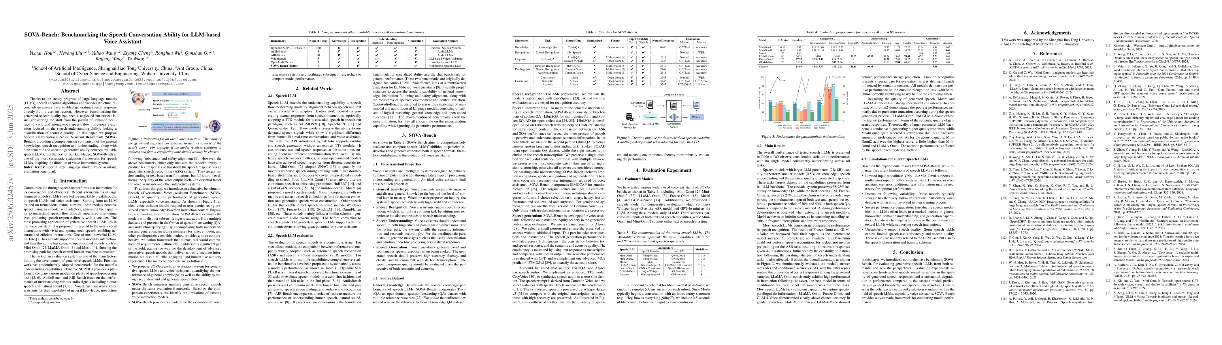 The paper proposes SOVA-Bench, a benchmark for evaluating speech LLMs based on general knowledge, speech recognition, understanding, and both semantic and acoustic generative abilities.