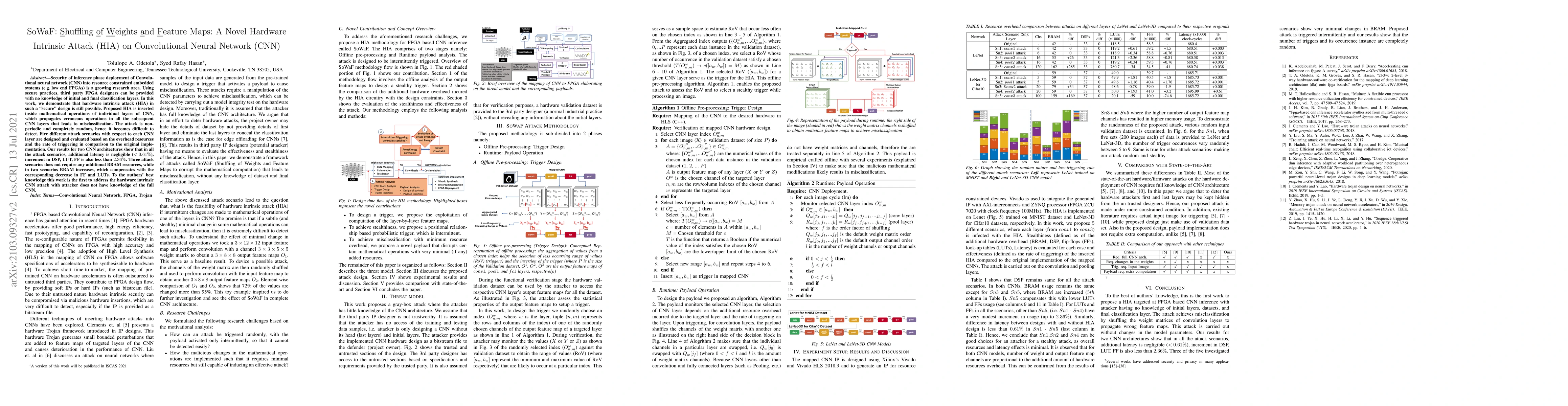 This research investigates the security of deploying Convolutional Neural Networks (CNNs) in resource-constrained embedded systems, revealing that a novel hardware intrinsic attack (HIA) can still compromise the inference phase even when the designer has no access to the network's initial and final layers. The study demonstrates that the proposed HIA, inserted within the mathematical operations of CNN layers, can propagate errors leading to misclassification, with minimal additional resource overhead.