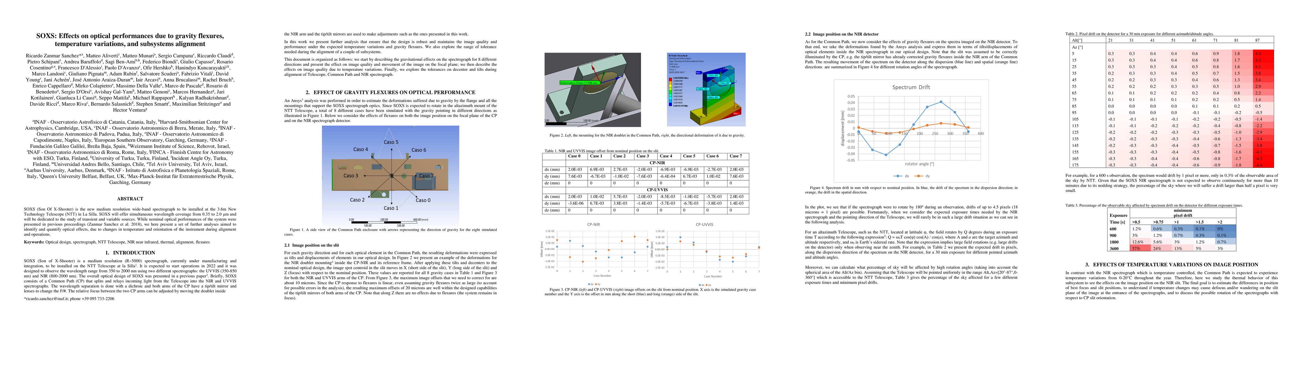 SOXS (Son Of X-Shooter) is the new medium resolution wide-band spectrograph to be installed at the 3.6m New Technology Telescope (NTT) in La Silla. SOXS will offer simultaneous wavelength coverage from 0.35 to 2.0 {\mu}m and will be dedicated to the study of transient and variable sources. While nominal optical performances of the system were presented in previous proceedings (arXiv:1809.01521), we here present a set of further analyses aimed to identify and quantify optical effects, due to changes in temperature and orientation of the instrument during alignment and operations.