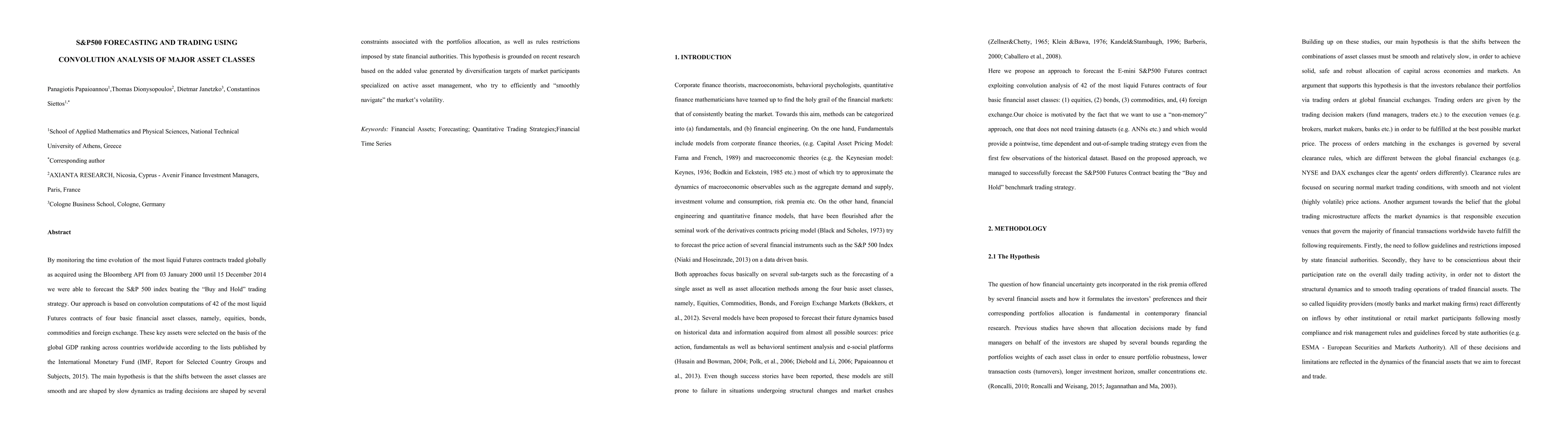 Researchers used convolution analysis of major asset classes to forecast the S&P 500 index, outperforming a buy-and-hold strategy. They analyzed 42 liquid futures contracts from 2000-2014 to capture shifts in asset allocation.