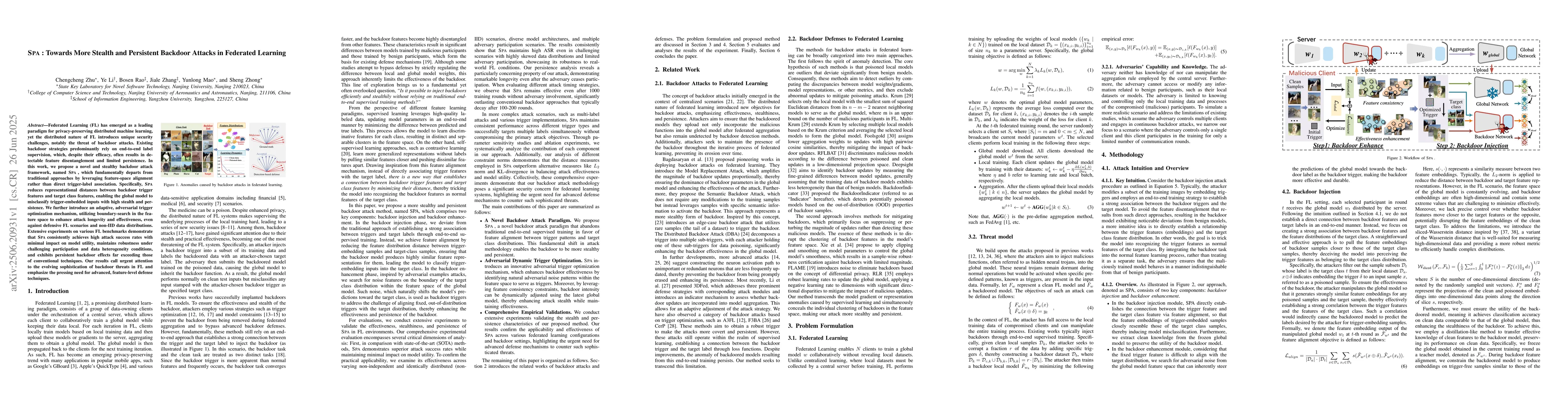 Federated Learning (FL) has emerged as a leading paradigm for privacy-preserving distributed machine learning, yet the distributed nature of FL introduces unique security challenges, notably the threat of backdoor attacks. Existing backdoor strategies predominantly rely on end-to-end label supervision, which, despite their efficacy, often results in detectable feature disentanglement and limited persistence. In this work, we propose a novel and stealthy backdoor attack framework, named SPA, which fundamentally departs from traditional approaches by leveraging feature-space alignment rather than direct trigger-label association. Specifically, SPA reduces representational distances between backdoor trigger features and target class features, enabling the global model to misclassify trigger-embedded inputs with high stealth and persistence. We further introduce an adaptive, adversarial trigger optimization mechanism, utilizing boundary-search in the feature space to enhance attack longevity and effectiveness, even against defensive FL scenarios and non-IID data distributions. Extensive experiments on various FL benchmarks demonstrate that SPA consistently achieves high attack success rates with minimal impact on model utility, maintains robustness under challenging participation and data heterogeneity conditions, and exhibits persistent backdoor effects far exceeding those of conventional techniques. Our results call urgent attention to the evolving sophistication of backdoor threats in FL and emphasize the pressing need for advanced, feature-level defense techniques.