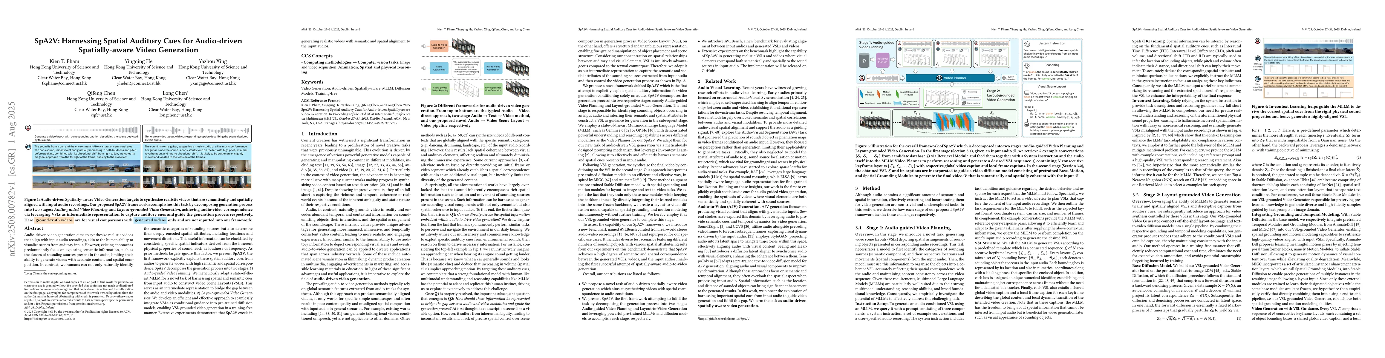Audio-driven video generation aims to synthesize realistic videos that align with input audio recordings, akin to the human ability to visualize scenes from auditory input. However, existing approaches predominantly focus on exploring semantic information, such as the classes of sounding sources present in the audio, limiting their ability to generate videos with accurate content and spatial composition. In contrast, we humans can not only naturally identify the semantic categories of sounding sources but also determine their deeply encoded spatial attributes, including locations and movement directions. This useful information can be elucidated by considering specific spatial indicators derived from the inherent physical properties of sound, such as loudness or frequency. As prior methods largely ignore this factor, we present SpA2V, the first framework explicitly exploits these spatial auditory cues from audios to generate videos with high semantic and spatial correspondence. SpA2V decomposes the generation process into two stages: 1) Audio-guided Video Planning: We meticulously adapt a state-of-the-art MLLM for a novel task of harnessing spatial and semantic cues from input audio to construct Video Scene Layouts (VSLs). This serves as an intermediate representation to bridge the gap between the audio and video modalities. 2) Layout-grounded Video Generation: We develop an efficient and effective approach to seamlessly integrate VSLs as conditional guidance into pre-trained diffusion models, enabling VSL-grounded video generation in a training-free manner. Extensive experiments demonstrate that SpA2V excels in generating realistic videos with semantic and spatial alignment to the input audios.