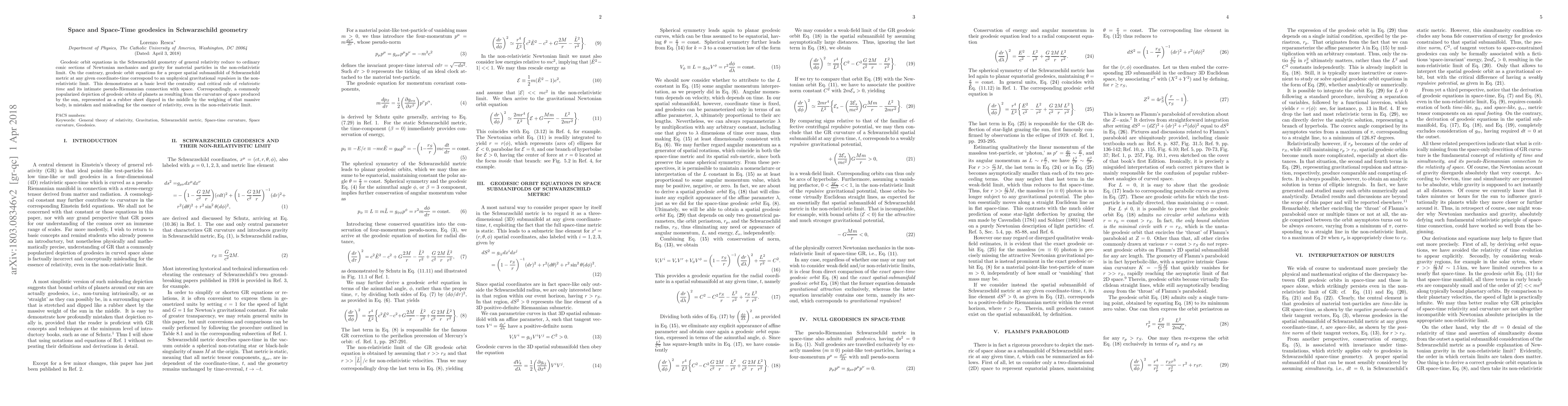 This paper explores geodesics in Schwarzschild geometry, showing that Newtonian mechanics accurately describes non-relativistic orbits, while spatial submanifolds reveal unphysical repulsion in the same limit. It highlights the importance of relativistic time in general relativity and critiques the rubber sheet analogy for its inaccuracy.
