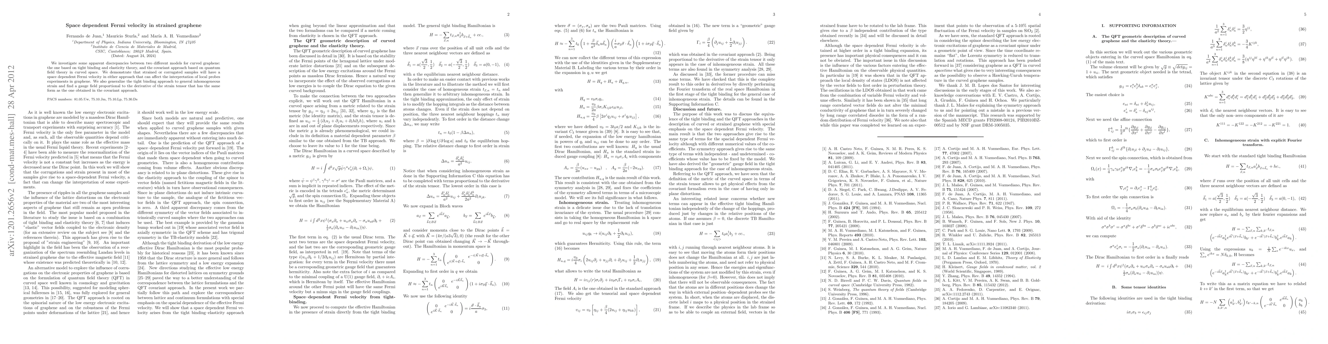 This paper resolves discrepancies between tight binding and quantum field theory models for curved graphene, showing that strain induces a space-dependent Fermi velocity that can impact experimental interpretations.