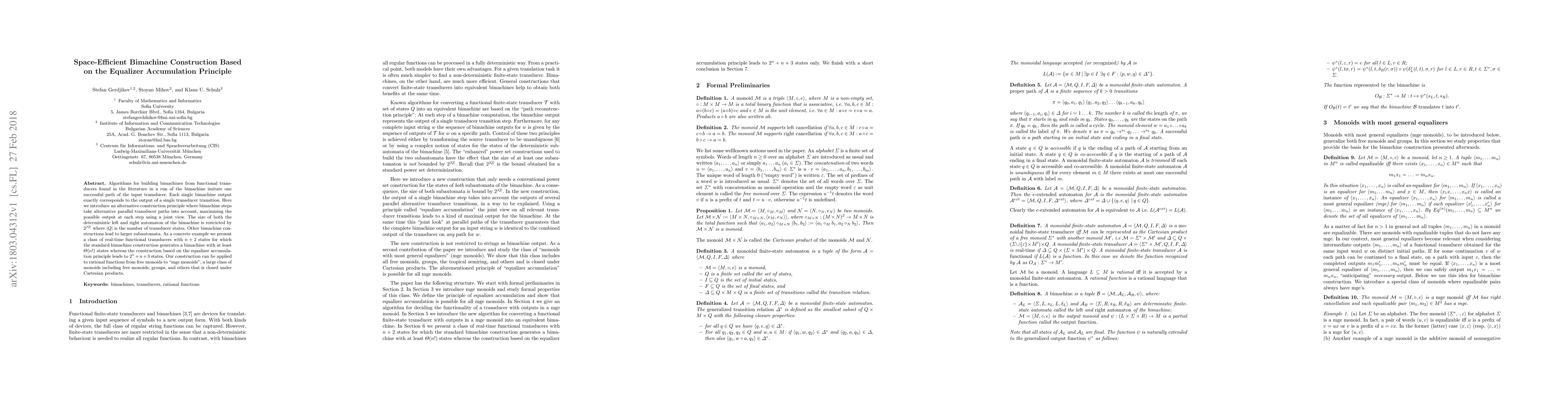 This paper proposes a new space-efficient bimachine construction method based on the equalizer accumulation principle, which considers parallel paths in functional transducers, leading to a size restriction of $2^{\vert Q\vert}$ for the bimachine's deterministic left and right automata. This method contrasts with standard constructions, as demonstrated by a real-time functional transducer example where the new method significantly reduces bimachine size.