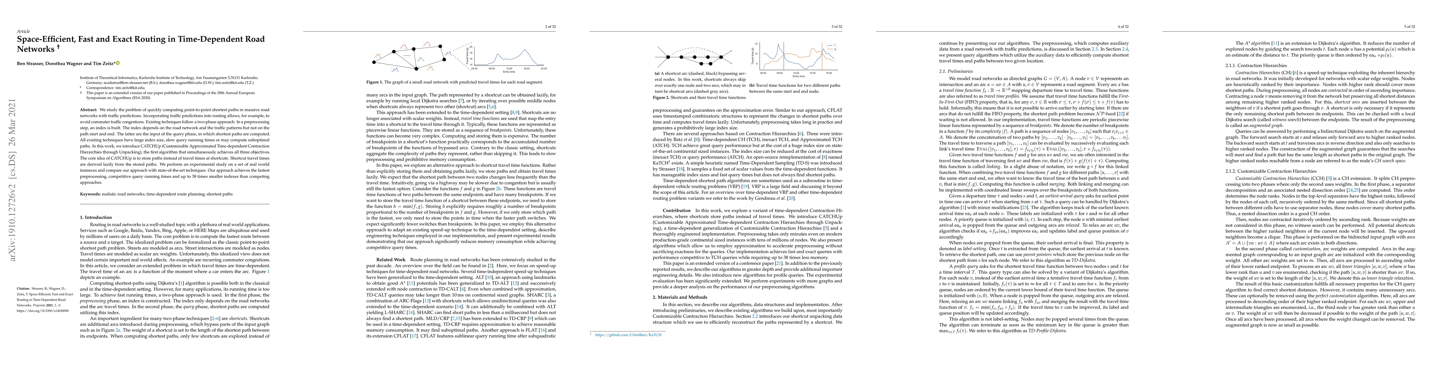 This paper introduces CATCHUp, an algorithm for fast, space-efficient, and exact routing in time-dependent road networks by storing paths instead of travel times at shortcuts, achieving superior preprocessing, competitive query times, and significantly smaller indexes compared to existing methods.