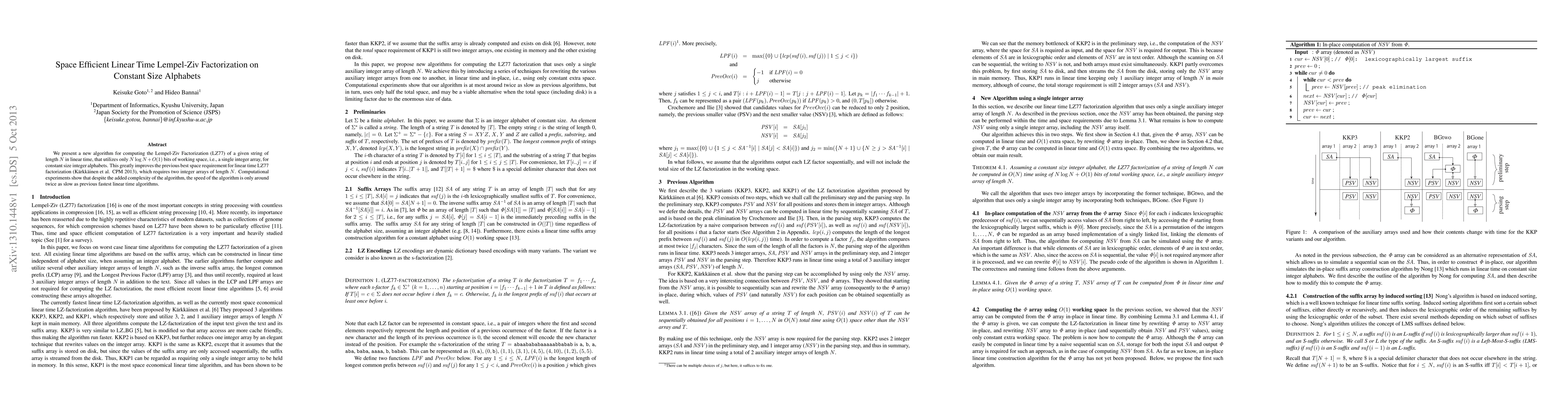 This paper introduces a novel algorithm for linear time Lempel-Ziv Factorization (LZ77) that operates in $O(N)$ time and uses only $N\log N + O(1)$ bits of space, significantly reducing the previous space requirement of two integer arrays of length $N$. Despite its complexity, the algorithm's speed is nearly double that of the fastest linear time LZ77 algorithms.