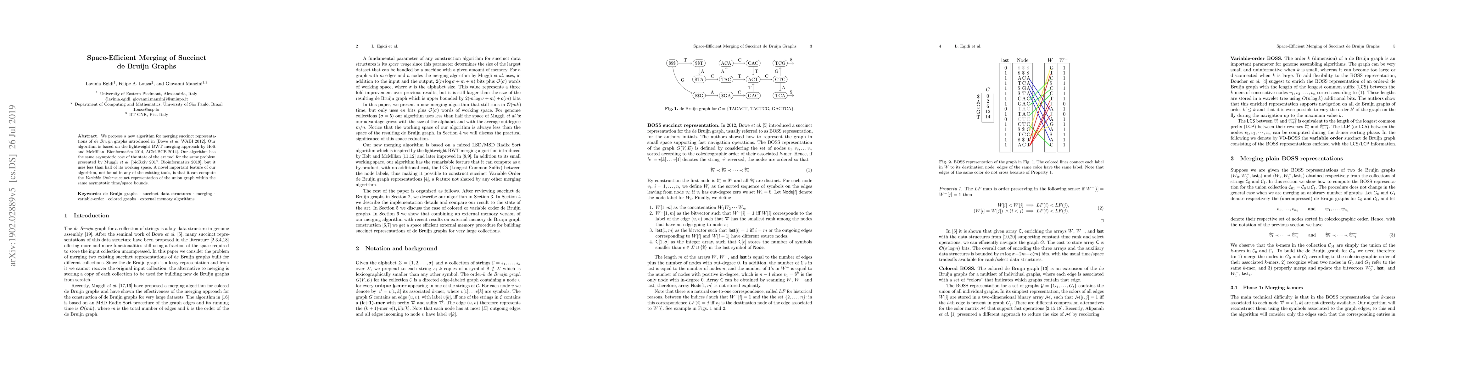 The paper proposes a new algorithm for merging succinct representations of de Bruijn graphs, based on the lightweight BWT merging approach by Holt and McMillan. The algorithm merges plain BOSS representations and can compute the Variable Order succinct representation within the same asymptotic time/space bounds.