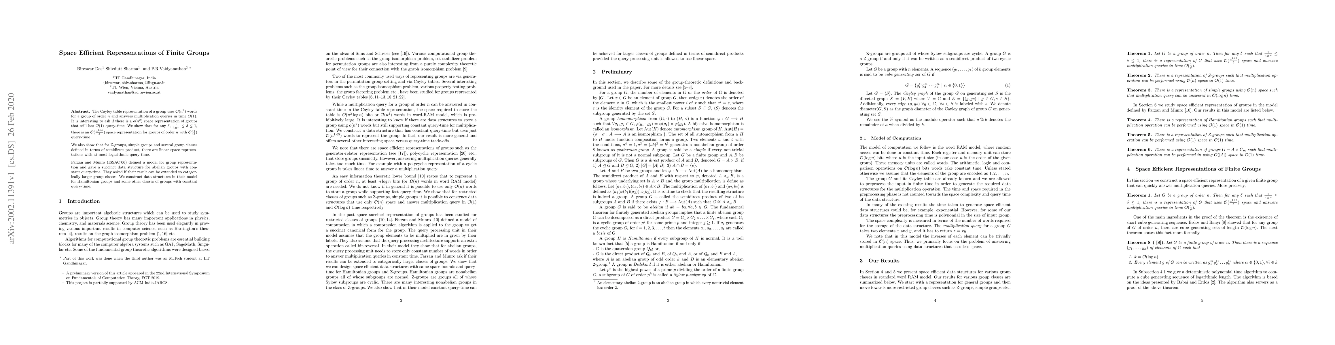 Researchers found that groups of a certain size can be represented in space efficient ways while still answering multiplication queries quickly, with query times ranging from linear to logarithmic for specific types of groups.