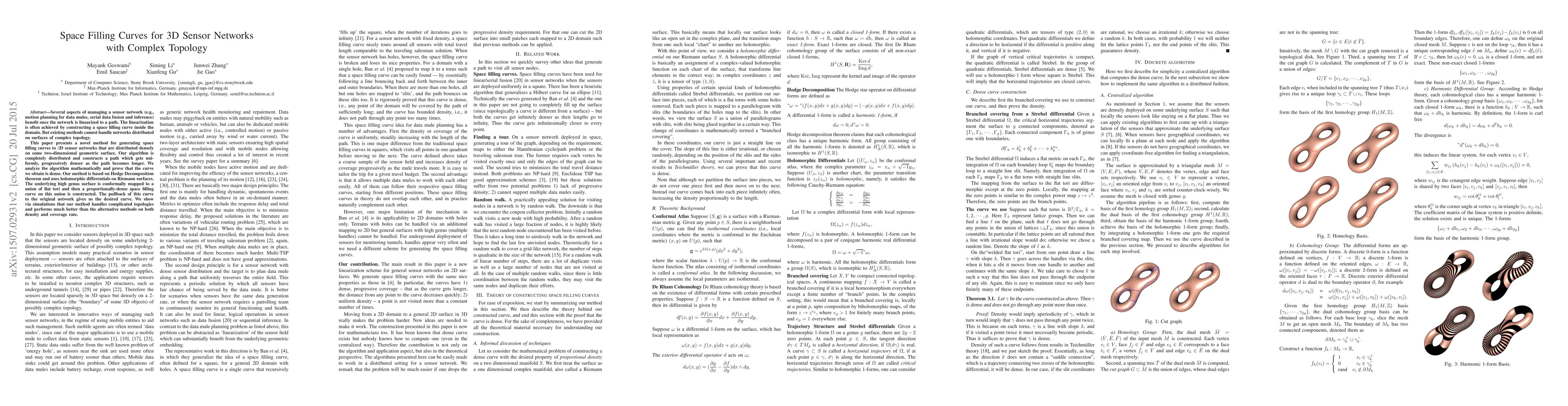 Researchers developed a new method to create dense space filling curves for 3D sensor networks on complex surfaces, using the Hodge decomposition theorem and holomorphic differentials, enabling efficient motion planning and data fusion.