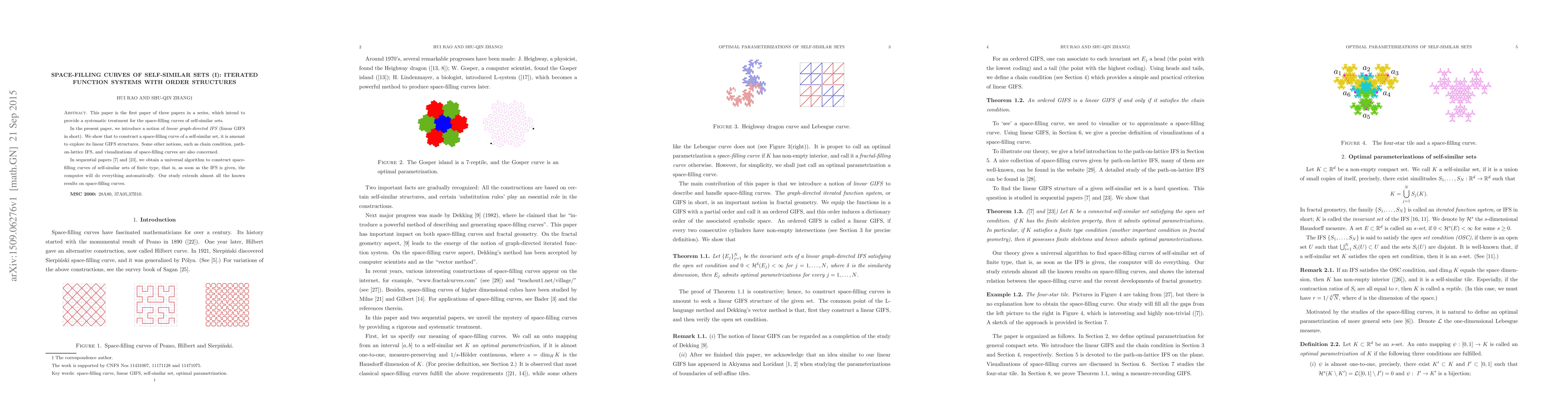 This paper introduces linear graph-directed iterated function systems (GIFS) to construct space-filling curves for self-similar sets, establishing their linear GIFS structures. Subsequent papers will provide a universal algorithm for automatically generating these curves.