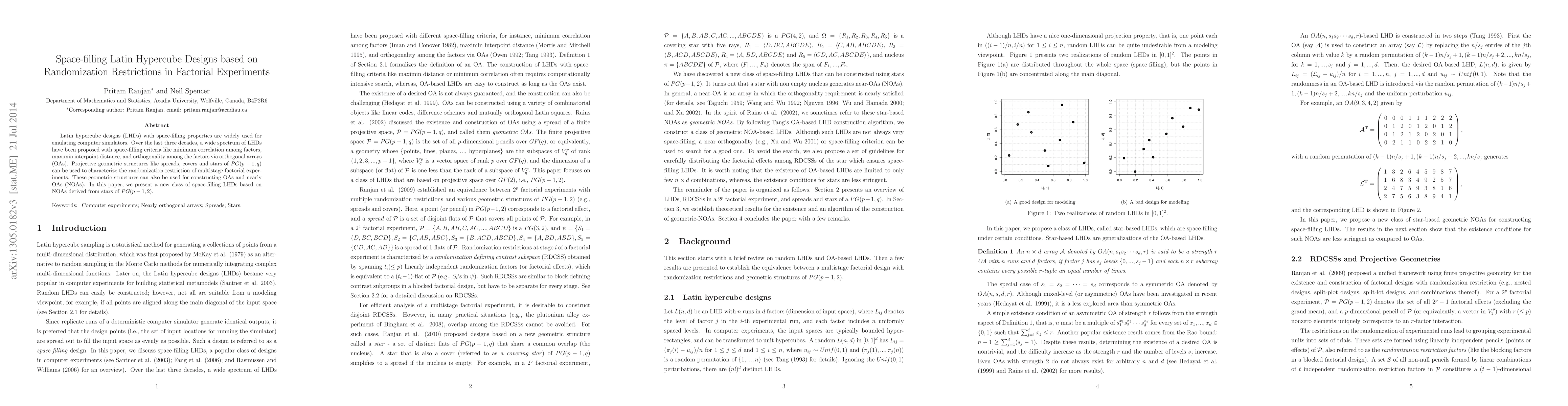 This paper introduces a new class of space-filling Latin hypercube designs (LHDs) based on nearly orthogonal arrays (NOAs) derived from stars of projective geometry PG(p-1, 2), aiming to enhance the randomization restrictions in multistage factorial experiments. The proposed designs improve upon existing LHDs by incorporating projective geometric structures.