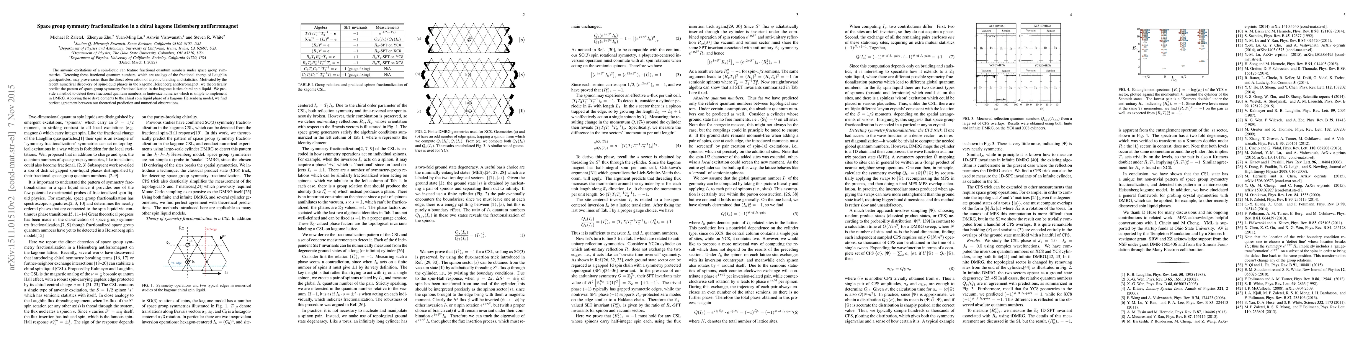 The anyonic excitations of a spin-liquid can feature fractional quantum numbers under space-group symmetries. Detecting these fractional quantum numbers, which are analogs of the fractional charge of Laughlin quasiparticles, may prove easier than the direct observation of anyonic braiding and statistics. Motivated by the recent numerical discovery of spin-liquid phases in the kagome Heisenberg antiferromagnet, we theoretically predict the pattern of space group symmetry fractionalization in the kagome lattice chiral spin liquid. We provide a method to detect these fractional quantum numbers in finite-size numerics which is simple to implement in DMRG. Applying these developments to the chiral spin liquid phase of a kagome Heisenberg model, we find perfect agreement between our theoretical prediction and numerical observations.
