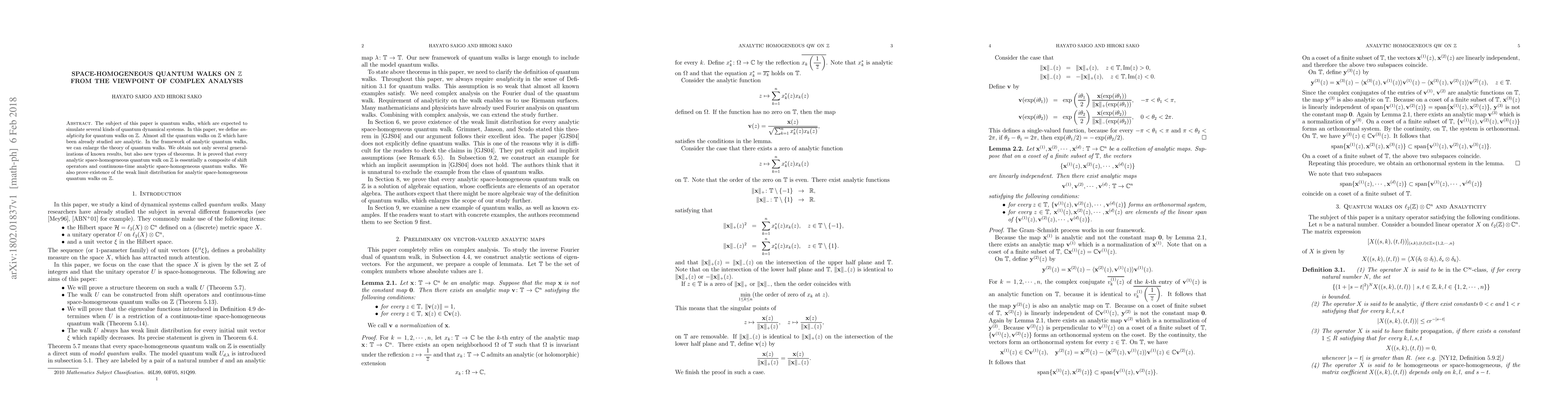 A new framework for analyzing space-homogeneous quantum walks on Z is presented, showing that these walks can be decomposed into simpler components and proving the existence of a weak limit distribution.