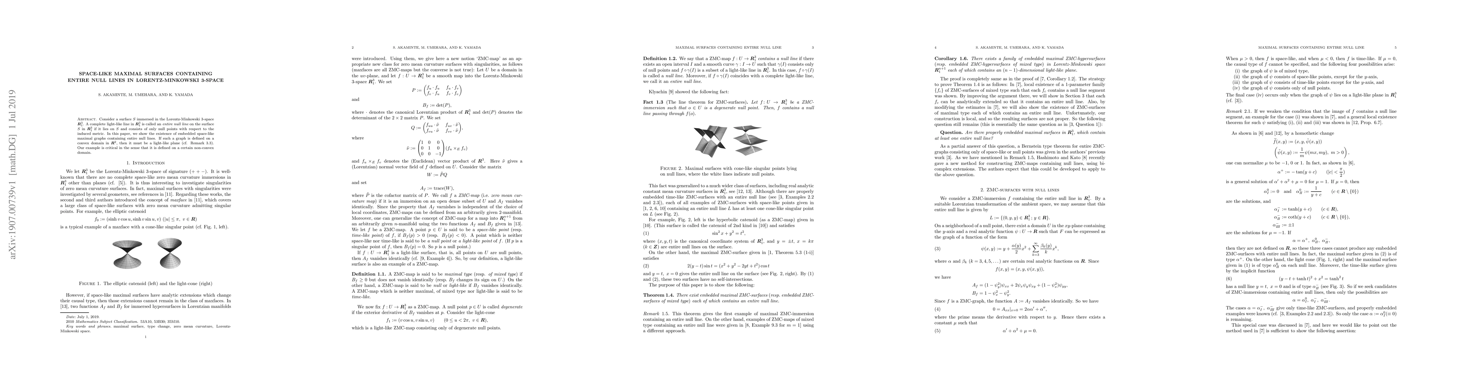 Consider a surface $S$ immersed in the Lorentz-Minkowski 3-space $\boldsymbol R^3_1$. A complete light-like line in $\boldsymbol R^3_1$ is called an entire null line on the surface $S$ in $\boldsymbol R^3_1$ if it lies on $S$ and consists of only null points with respect to the induced metric. In this paper, we show the existence of embedded space-like maximal graphs containing entire null lines. If such a graph is defined on a convex domain in $\boldsymbol R^2$, then it must be a light-like plane. Our example is critical in the sense that it is defined on a certain non-convex domain.