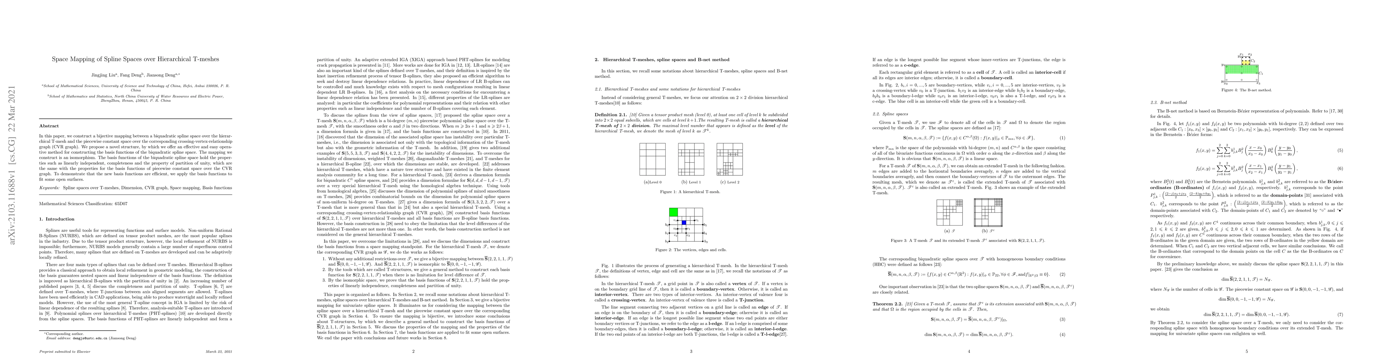 This paper constructs a bijective isomorphism between biquadratic spline spaces over hierarchical T-meshes and piecewise constant spaces over corresponding crossing-vertex-relationship graphs, offering a novel method for constructing effective spline basis functions. The new basis functions are demonstrated to be efficient through fitting open surfaces.