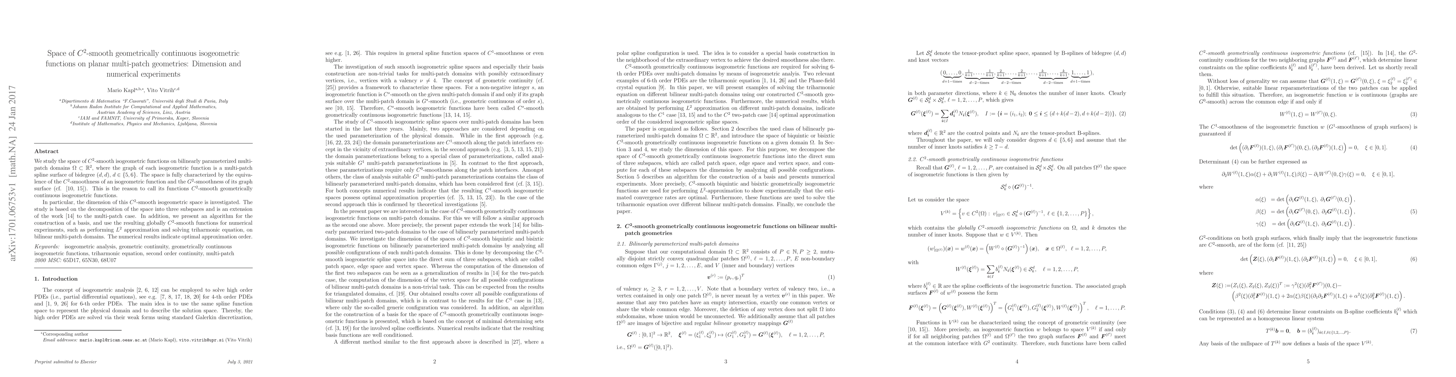 This paper characterizes the space of $C^{2}$-smooth geometrically continuous isogeometric functions on planar multi-patch geometries, decomposing it into three subspaces and determining its dimension. It also presents an algorithm for constructing a basis and conducts numerical experiments showing optimal approximation order.