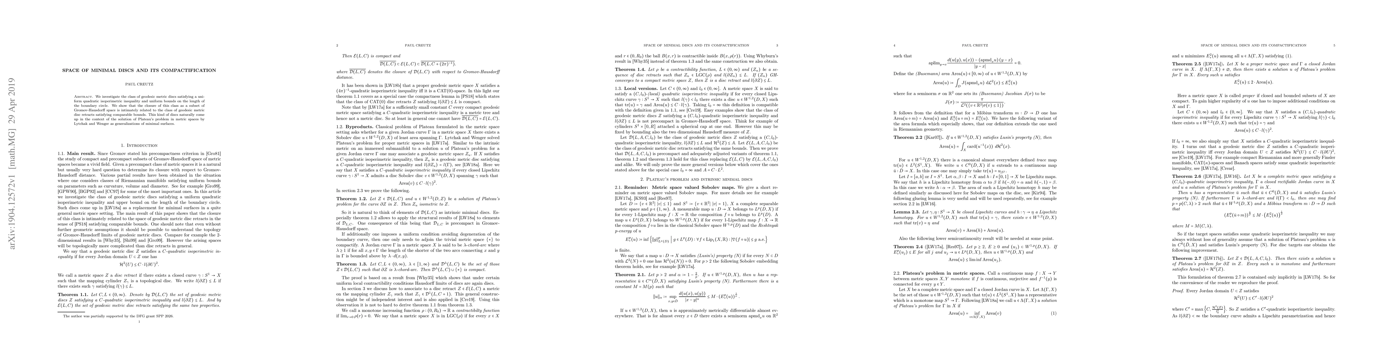 This paper explores geodesic metric discs with uniform quadratic isoperimetric inequalities and boundary constraints, demonstrating their closure in Gromov-Hausdorff space relates to geodesic metric disc retracts. These discs are significant in solving Plateau's problem in metric spaces, akin to minimal surfaces.