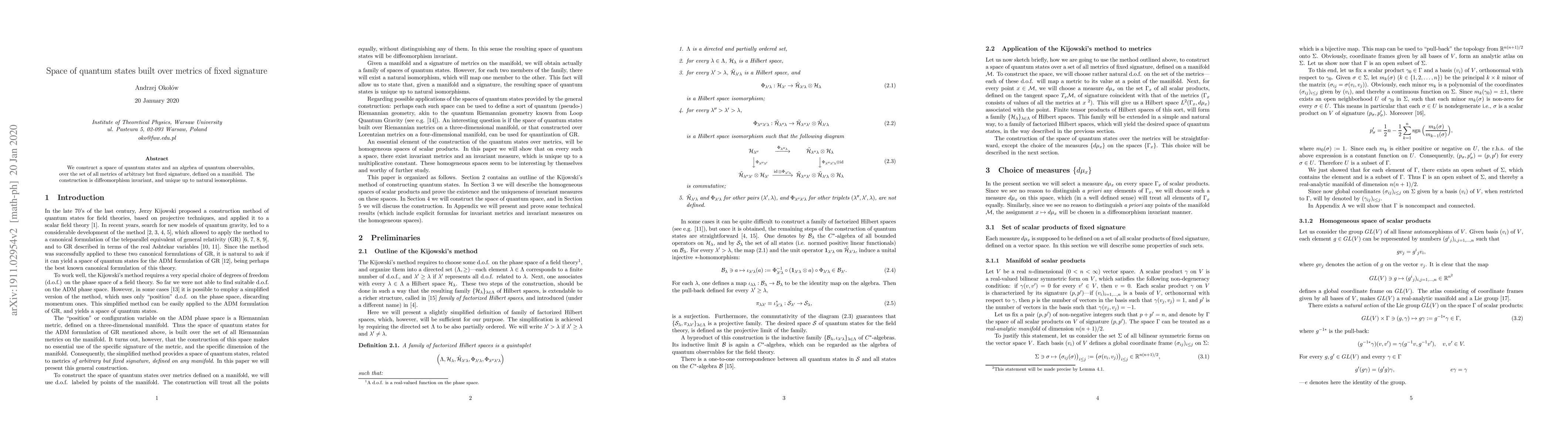 Researchers created a space of quantum states built on metrics with fixed signatures, providing a new framework for understanding quantum systems.