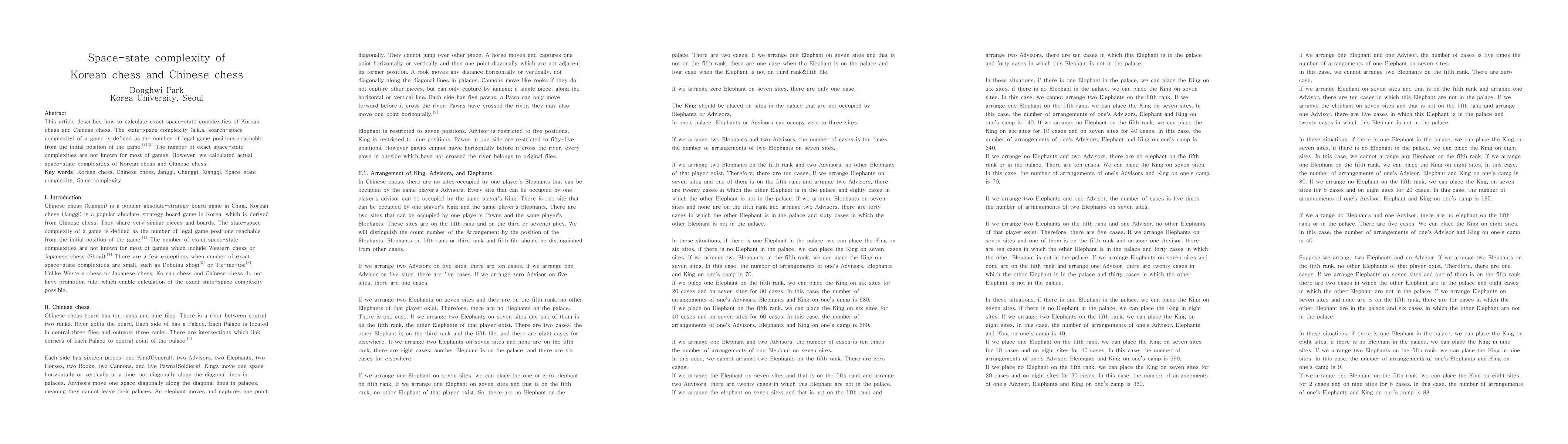 This paper calculates the exact space-state complexities for Korean chess and Chinese chess, determining the number of reachable legal game positions from the initial state. The results provide the first known exact numbers for these game complexities.