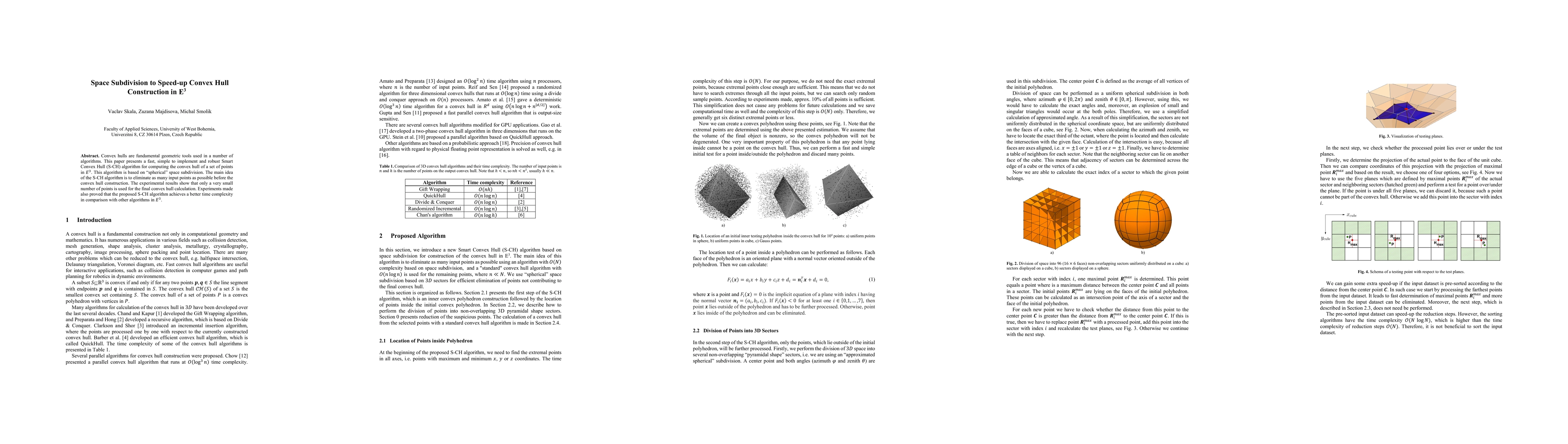 This paper introduces a Smart Convex Hull (S-CH) algorithm that uses "spherical" space subdivision to significantly reduce computation time by eliminating unnecessary points before convex hull construction, achieving better time complexity compared to other methods. Experimental results demonstrate the algorithm's efficiency and robustness.
